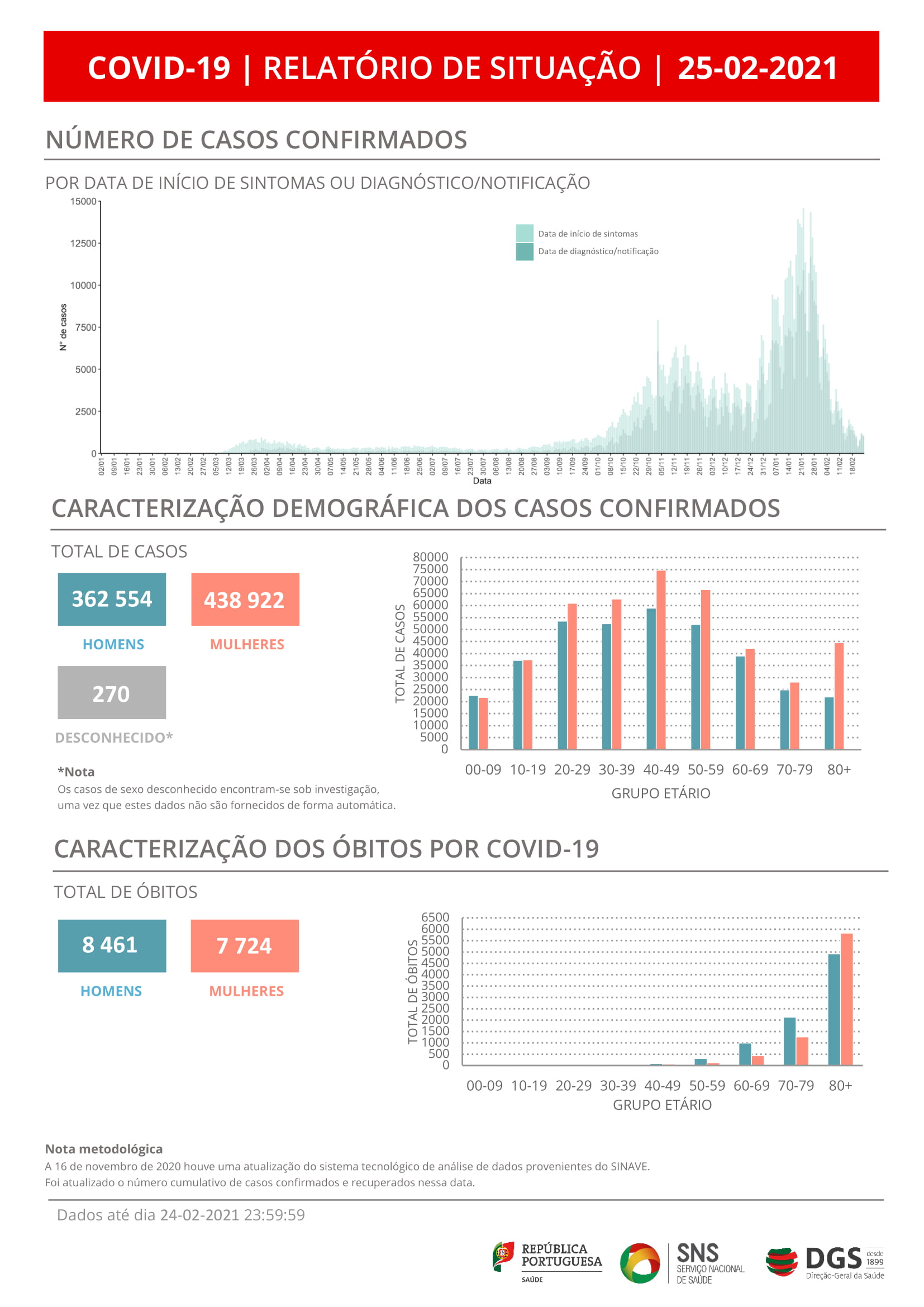 Desde março de 2020, Portugal já registou 16.185 mortes associadas à covid-19 e 801.746 casos de infeção pelo coronavírus SARS-CoV-2.