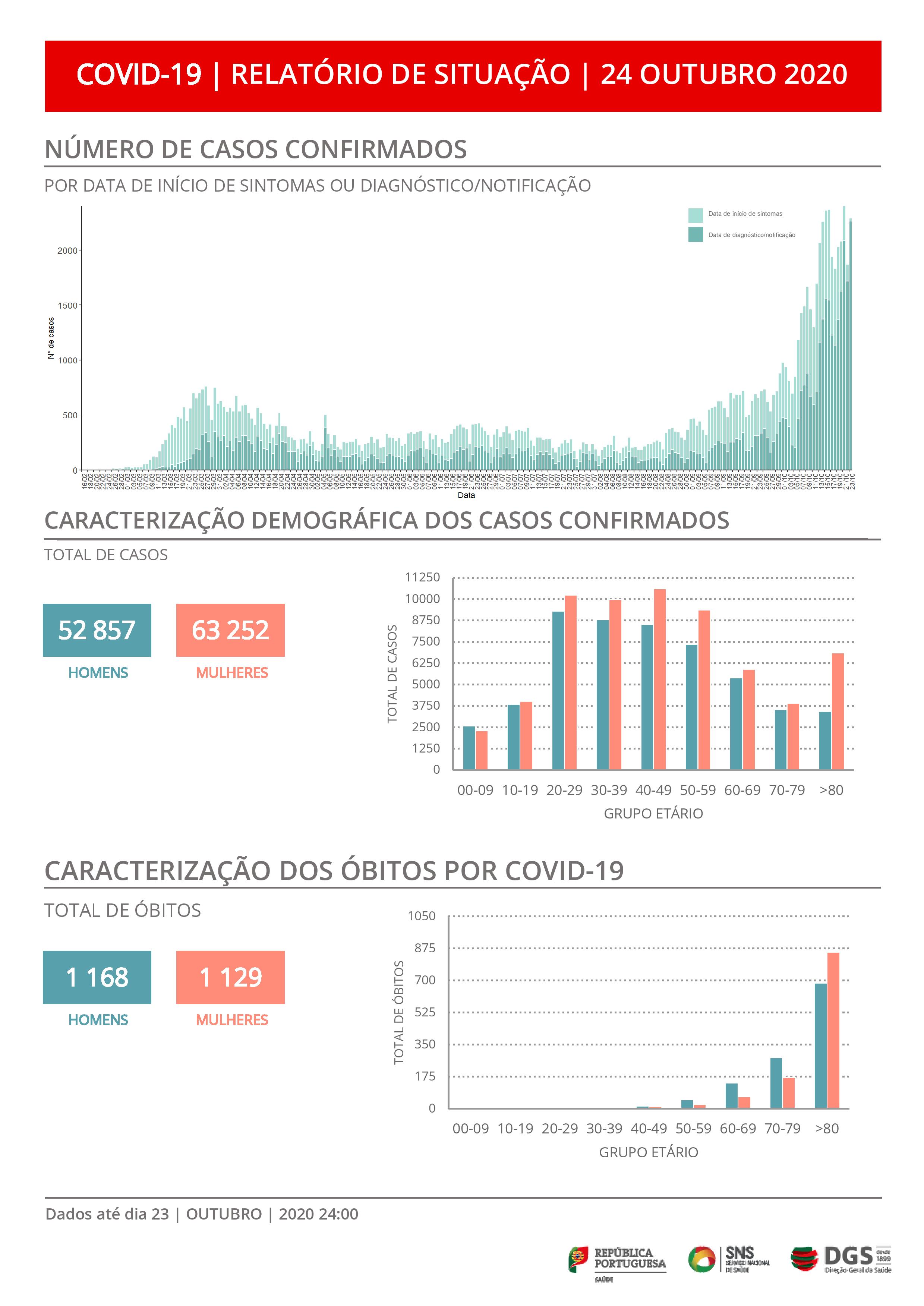 Na região Centro registaram-se 273 novos casos, contabilizando 9.661 infeções e 291 mortos.