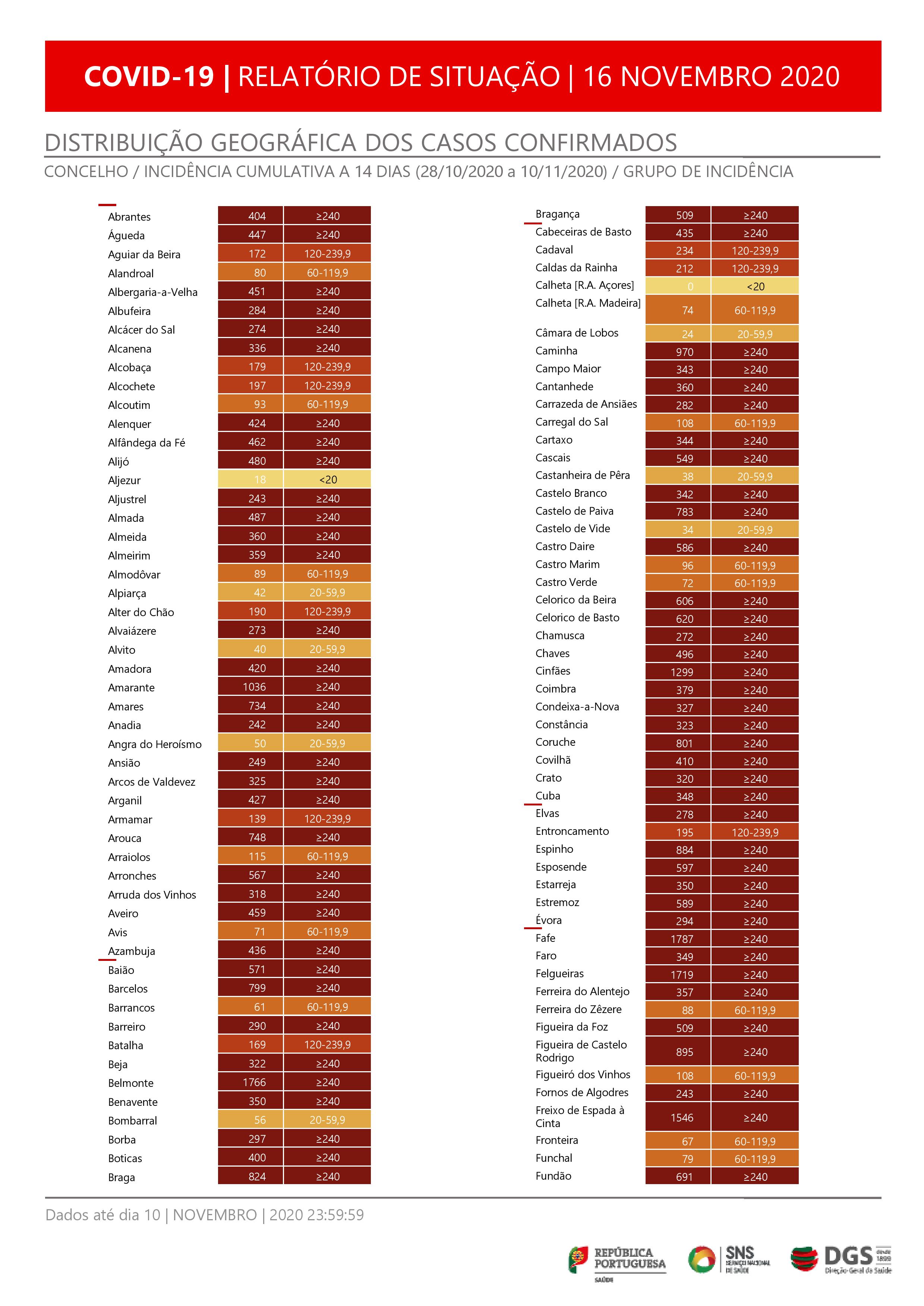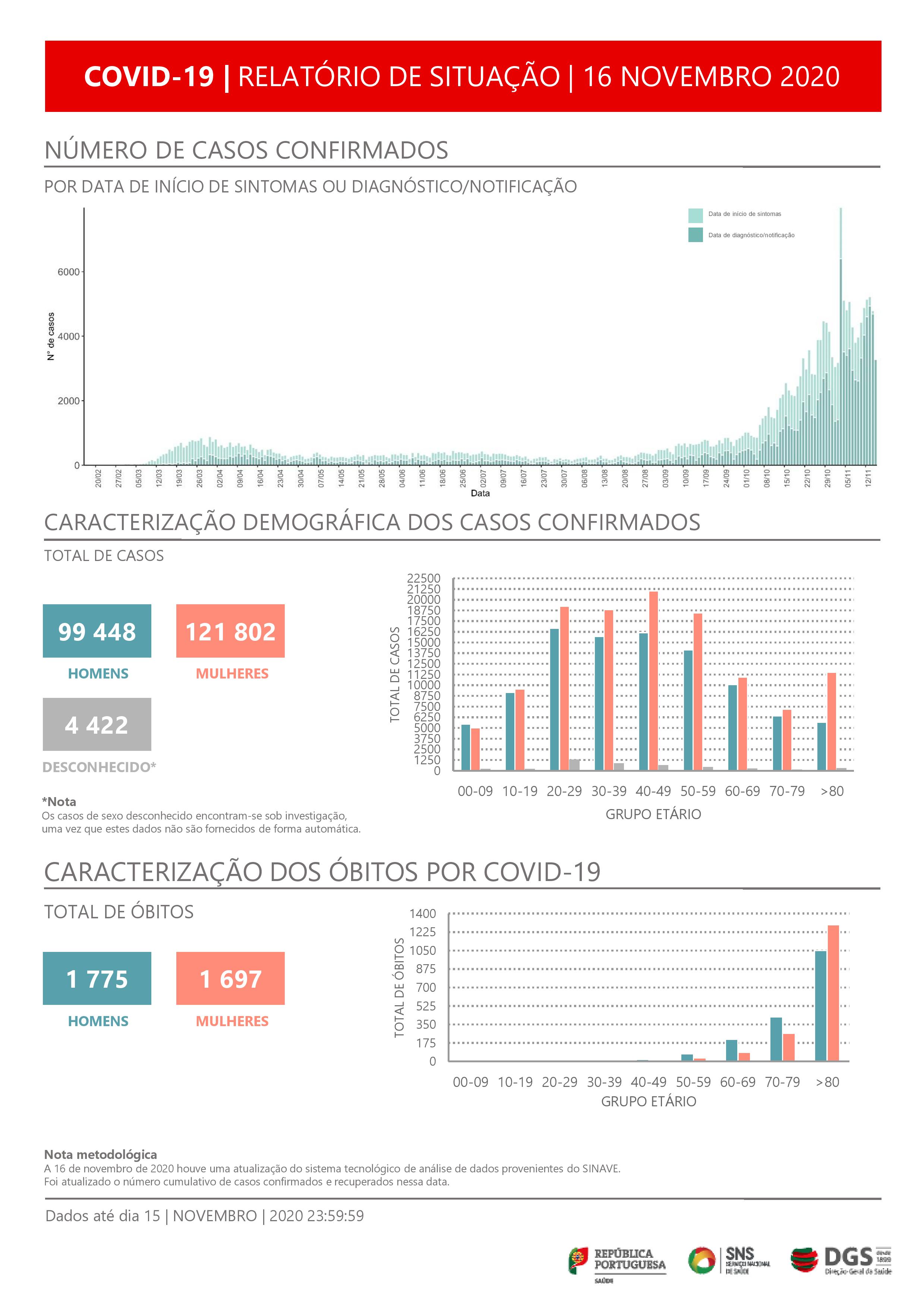 Segundo a DGS, em relação aos casos confirmados e aos recuperados (mais 3.560), os valores de hoje resultam de uma mudança no sistema de análise de dados, sendo a diferença diária nestes campos calculada em relação aos dados do dia anterior.