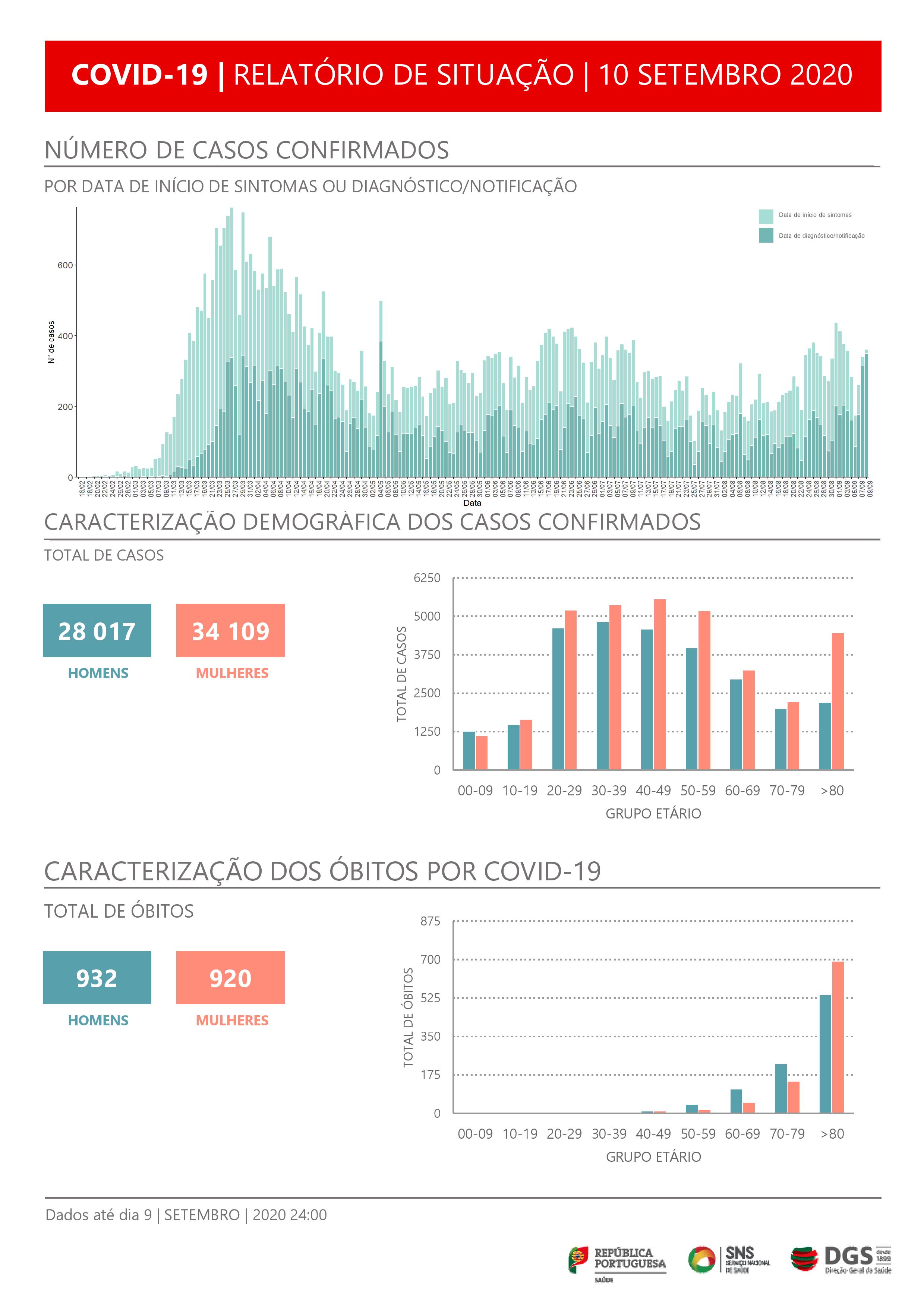 No total, o novo coronavírus afetou em Portugal pelo menos 28.017 homens e 34.109 mulheres, de acordo com os casos declarados.