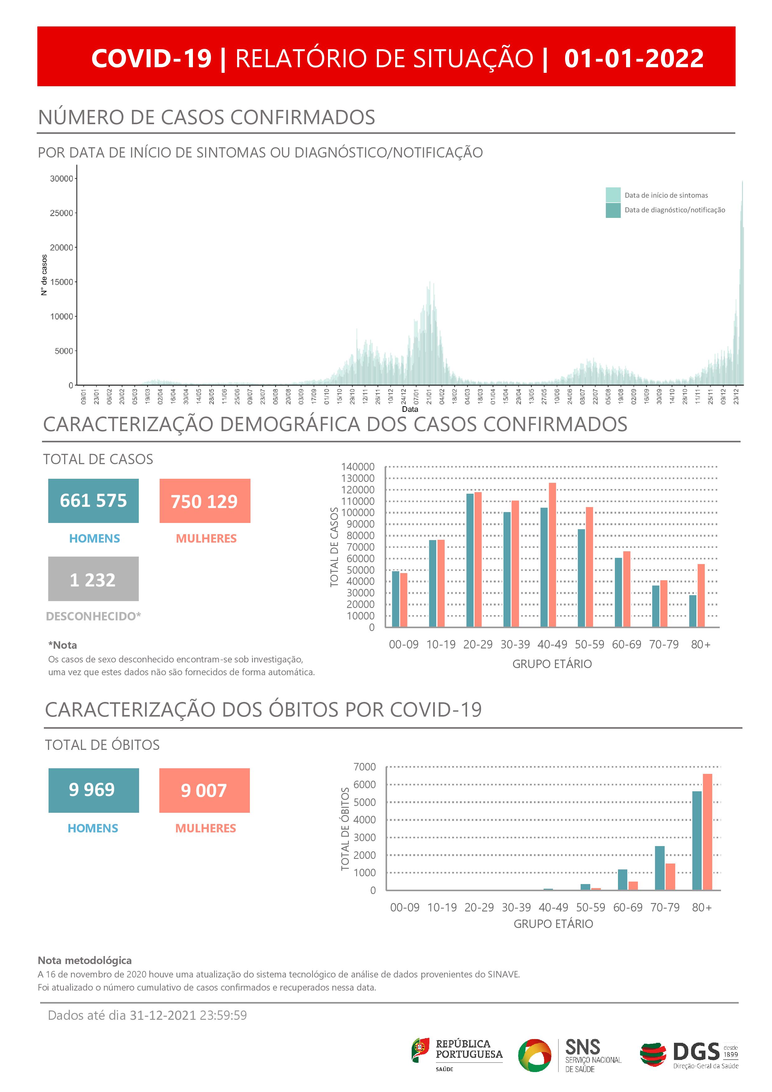 Em Portugal, desde março de 2020, morreram 18.976 pessoas, 9.969 homens e 9.007 mulheres.