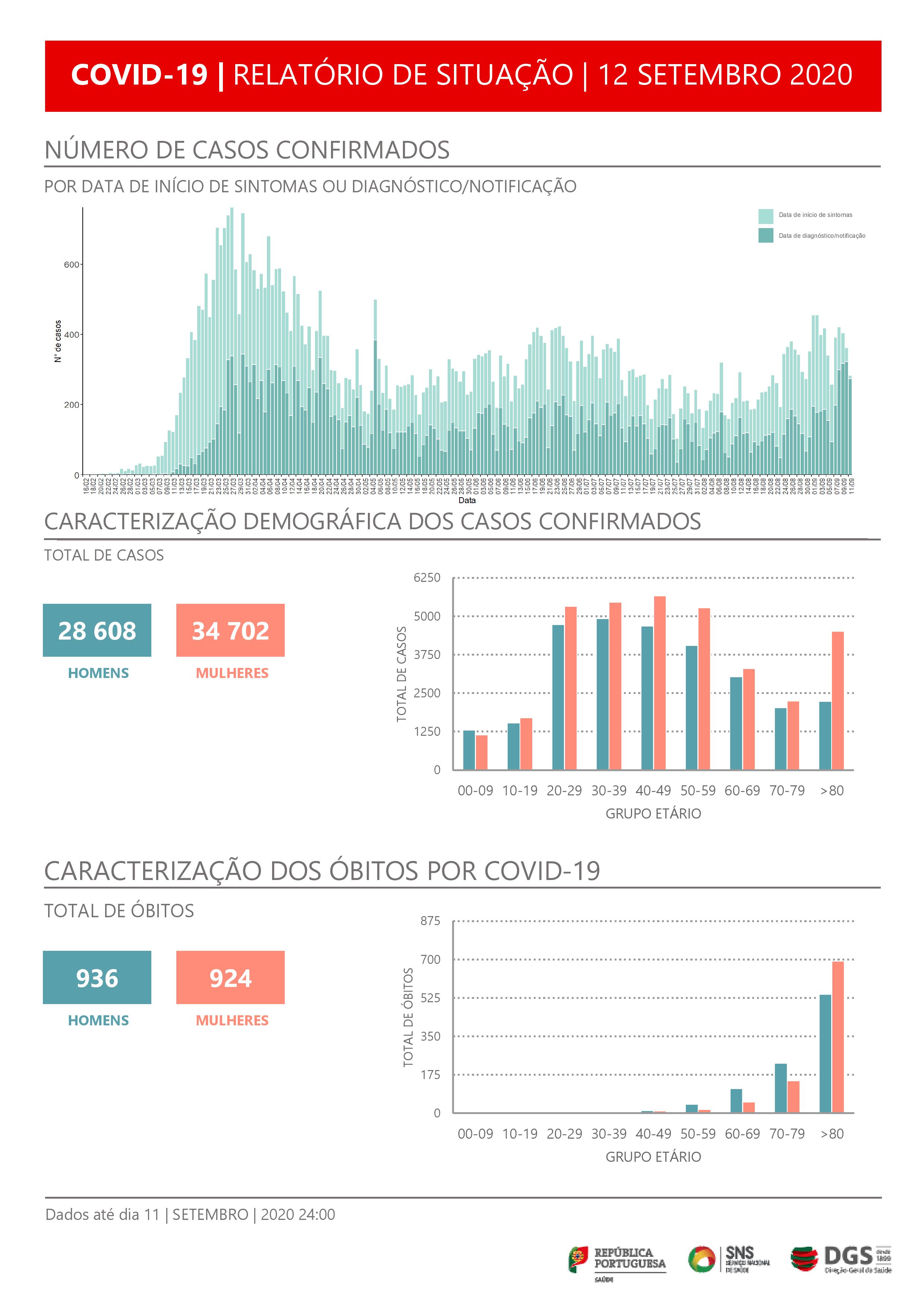 Os casos confirmados distribuem-se por todas as faixas etárias, situando-se entre os 20 e os 59 anos o registo de maior número de infeções.