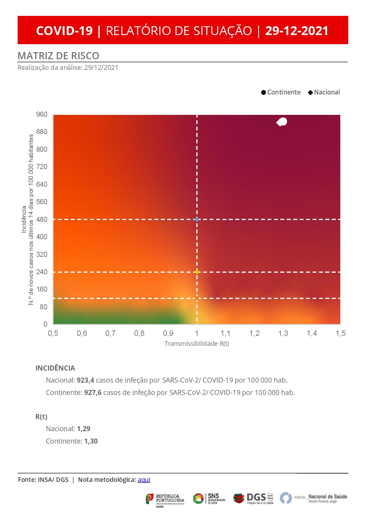 Comparativamente com a situação registada em Portugal no mesmo dia há um ano, o país tem hoje mais 23.531 novos casos de infeção (contabilizaram-se 3.336 novos casos a 29 de dezembro de 2020) e mais 70.569 casos ativos (há um ano totalizavam 65.457).
