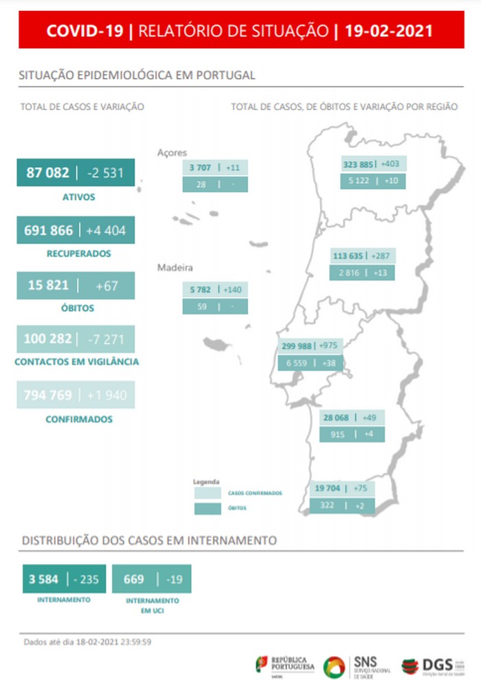 Desde março de 2020, Portugal já registou 15.821 mortes associadas à covid-19 e 794.769 casos de infeção pelo coronavírus SARS-CoV-2.