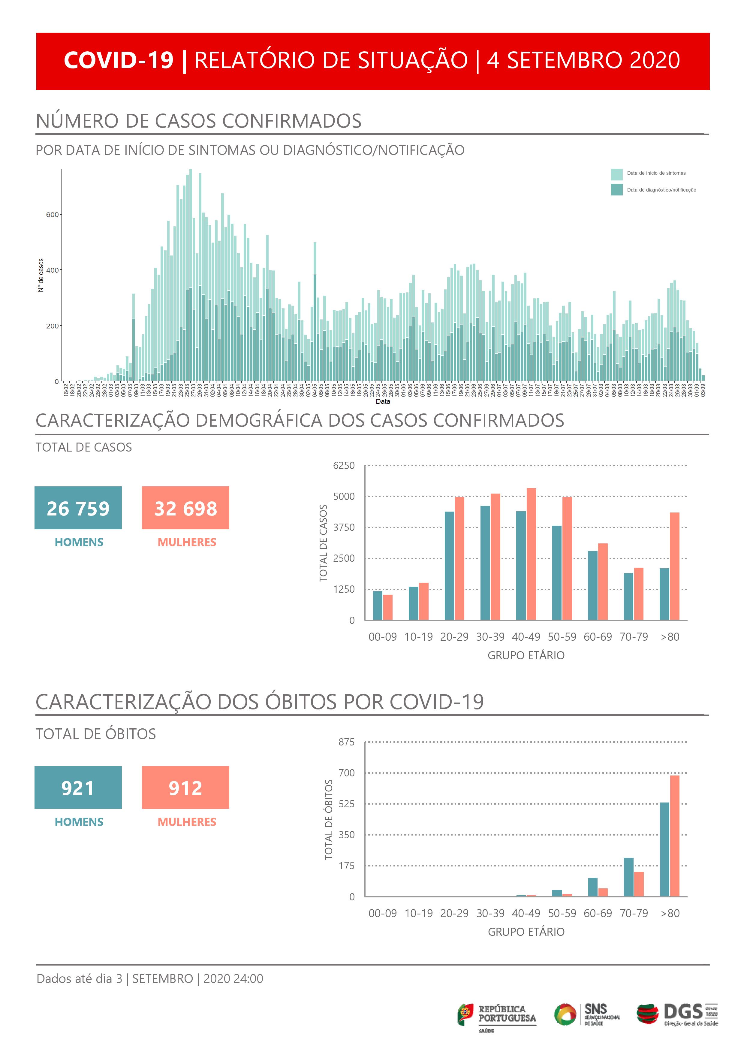 No total, o novo coronavírus afetou em Portugal pelo menos 26.759 homens e 32.698 mulheres, de acordo com os casos declarados.