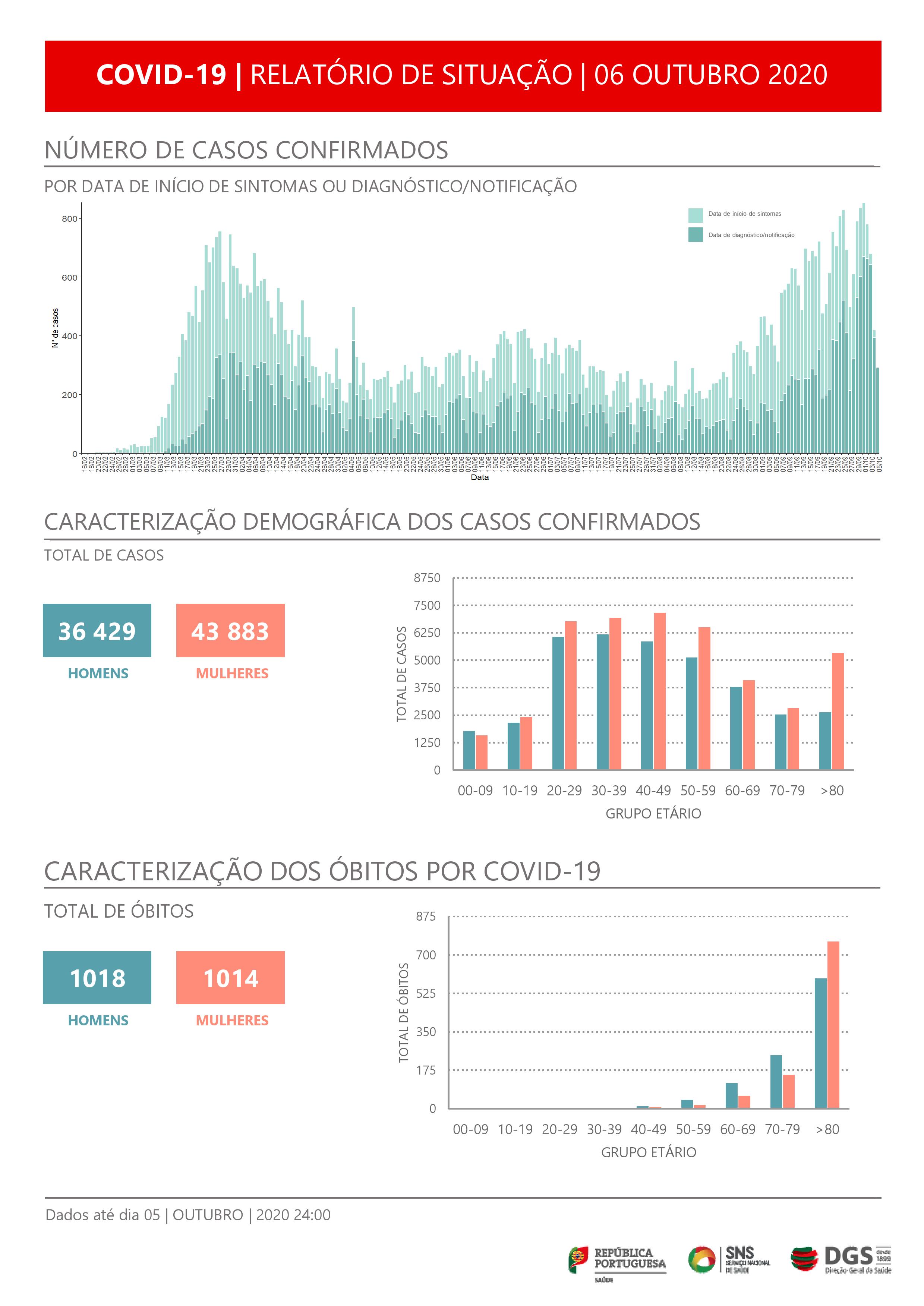 O novo coronavírus já infetou em Portugal pelo menos 36.429 homens e 43.883 mulheres, de acordo com os casos declarados.