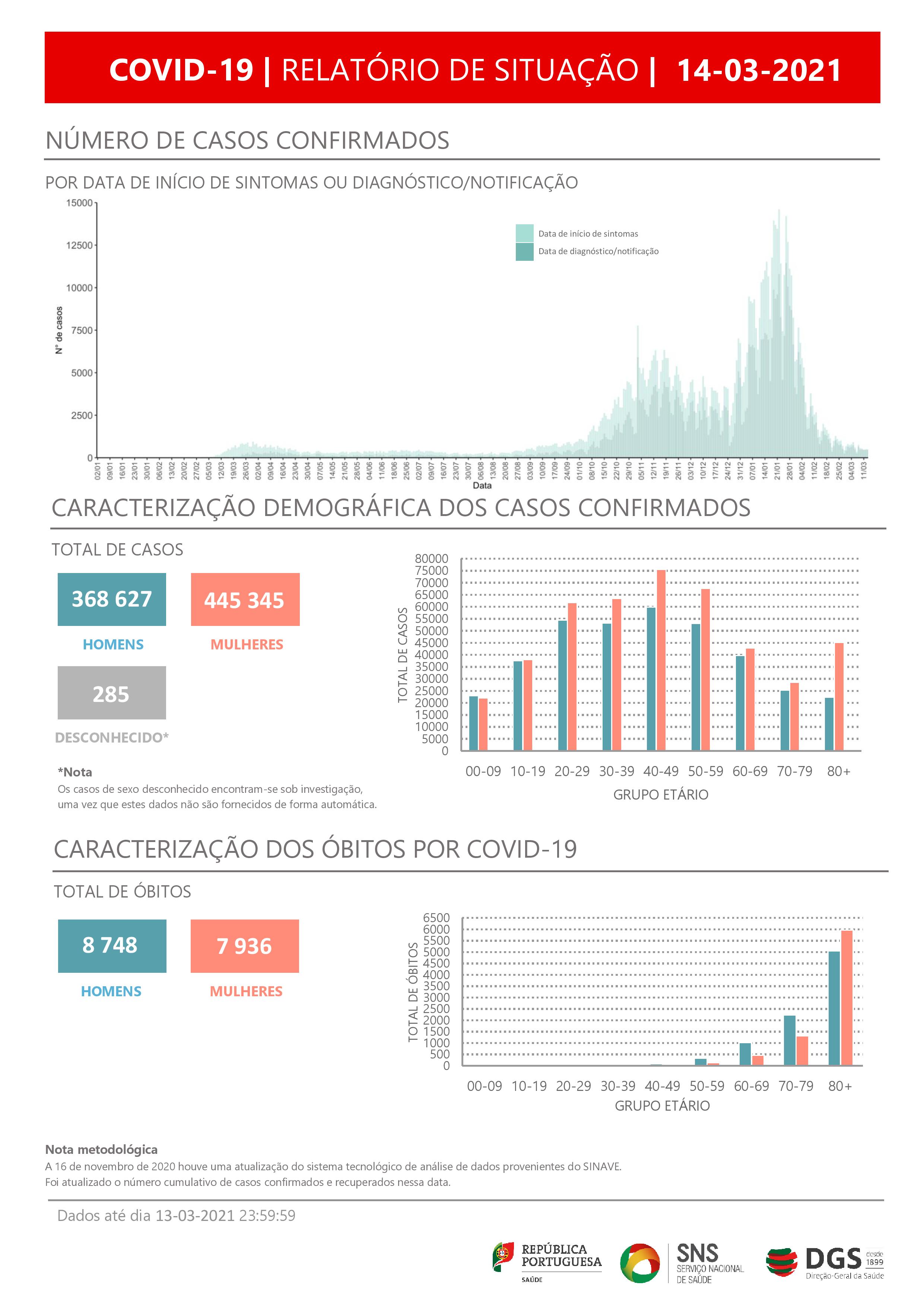 Desde março de 2020, Portugal já registou 16.684 mortes associadas à covid-19 e 814.257 casos de infeção pelo coronavírus SARS-CoV-2.