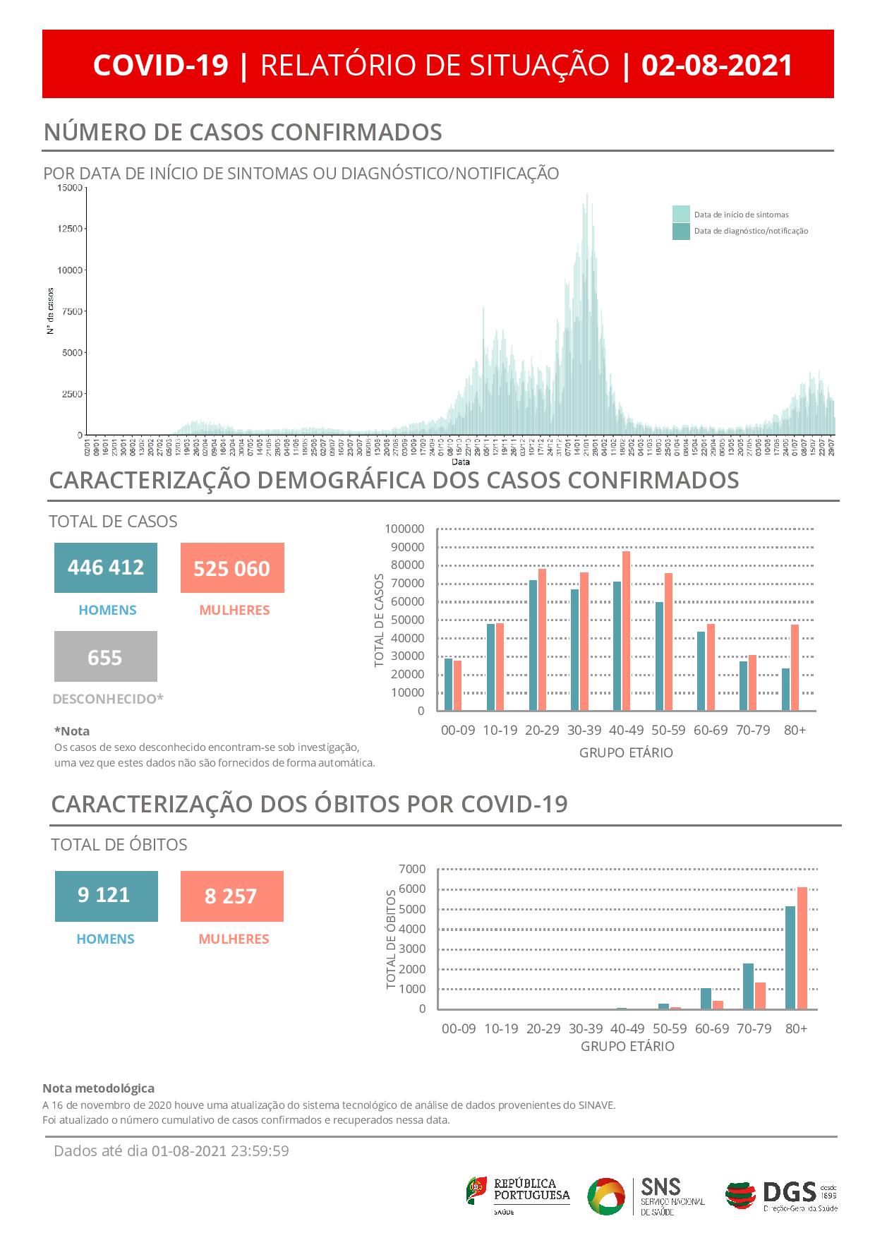 Portugal regista hoje nove mortes atribuídas à covid-19, 1.190 novos casos de infeção pelo coronavírus SARS-CoV-2 e um novo aumento nos internamentos em enfermaria e cuidados intensivos, segundo os dados oficiais.