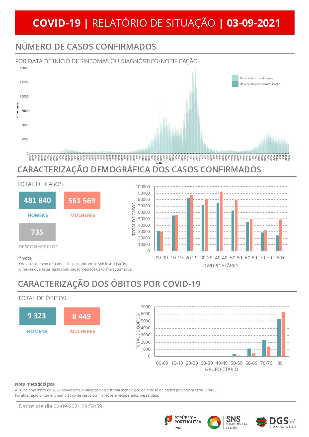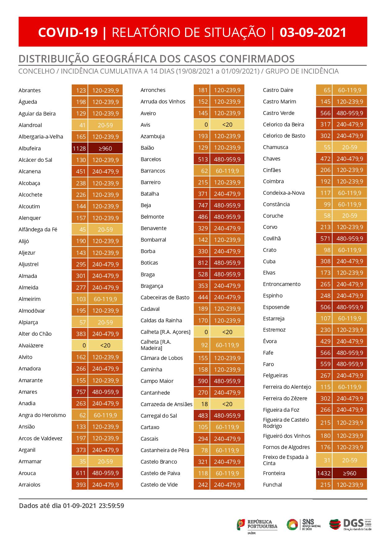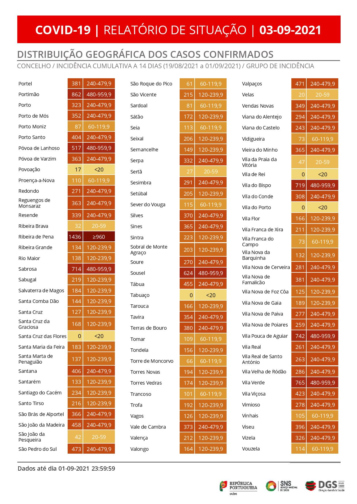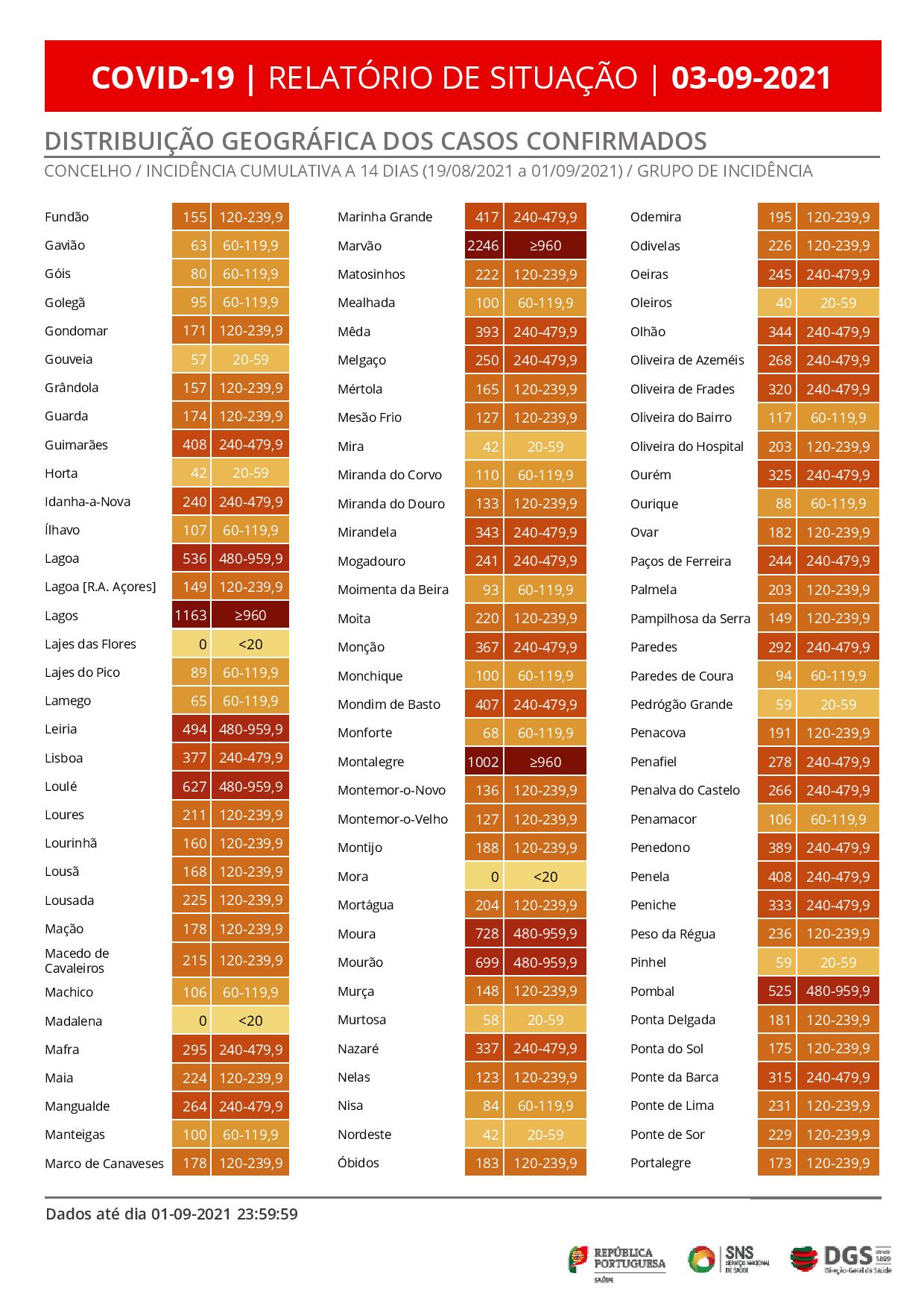 A área de Lisboa e Vale do Tejo, com 586 novos casos e a região Norte, com 630, têm 66,7% do total das novas infeções verificadas nas últimas 24 horas.