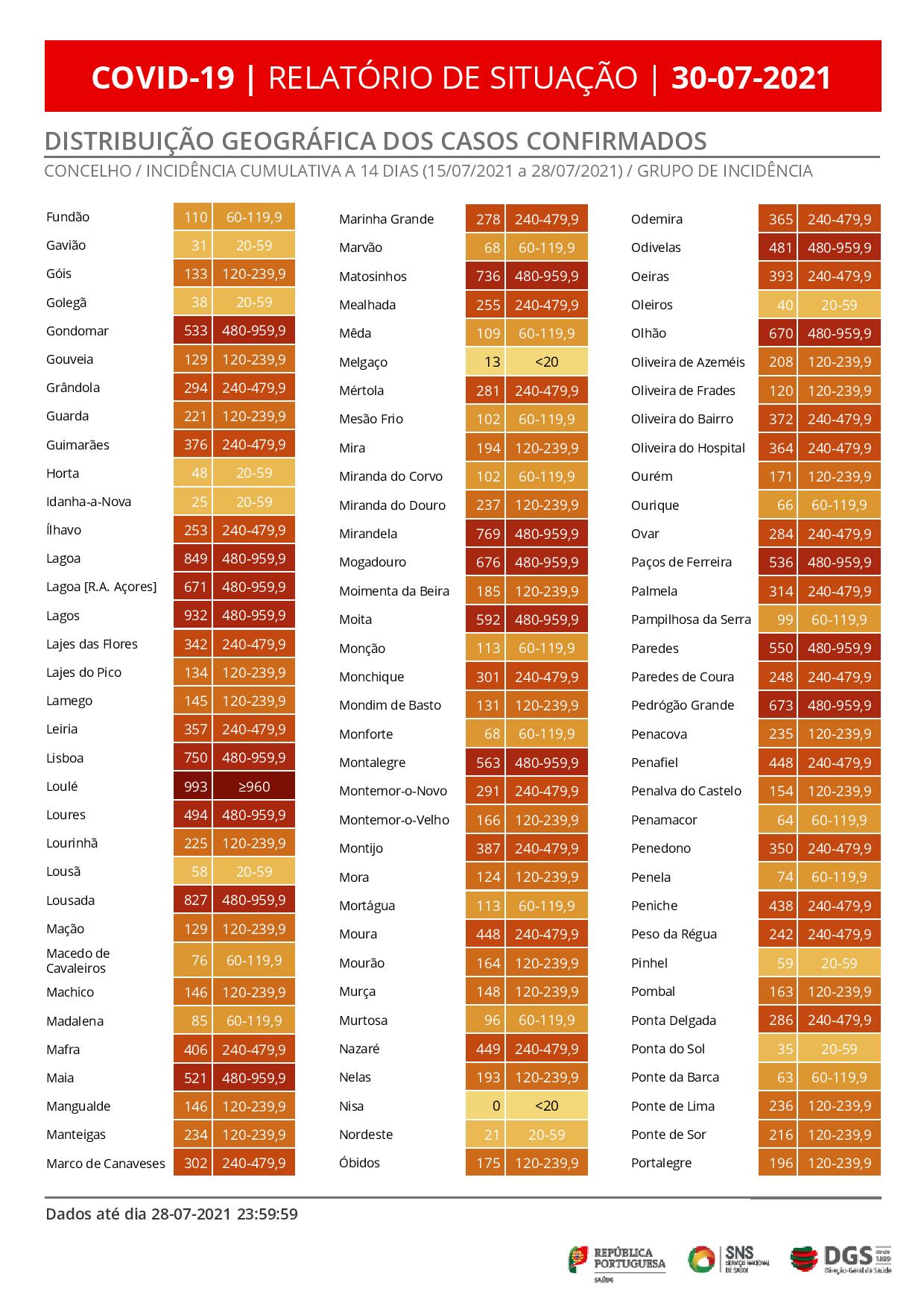 A área de Lisboa e Vale do Tejo com 913 casos e a região Norte com 950 têm 71,7% do total das novas infeções verificadas nas últimas 24 horas.