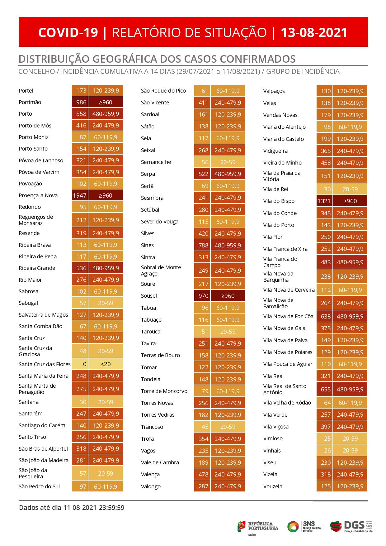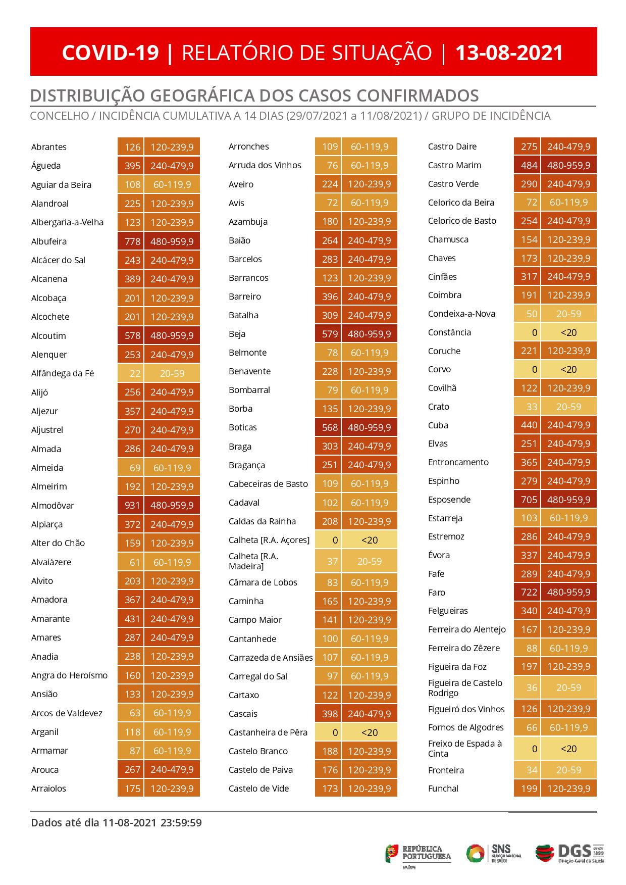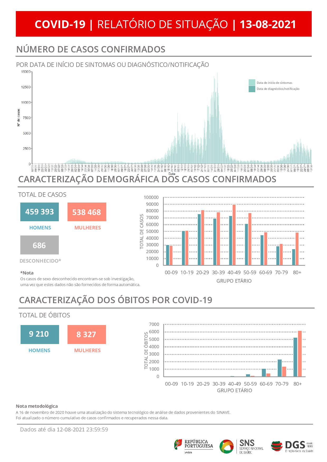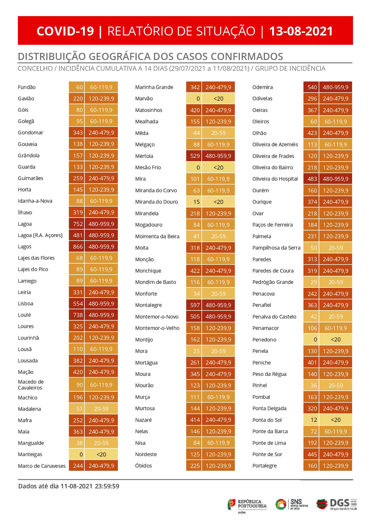 Portugal registou 12 mortes atribuídas à covid-19 e 2.598 novos casos de infeção pelo coronavírus SARS-CoV-2 nas últimas 24 horas, de acordo com o boletim epidemiológico da Direção-Geral da Saúde (DGS).