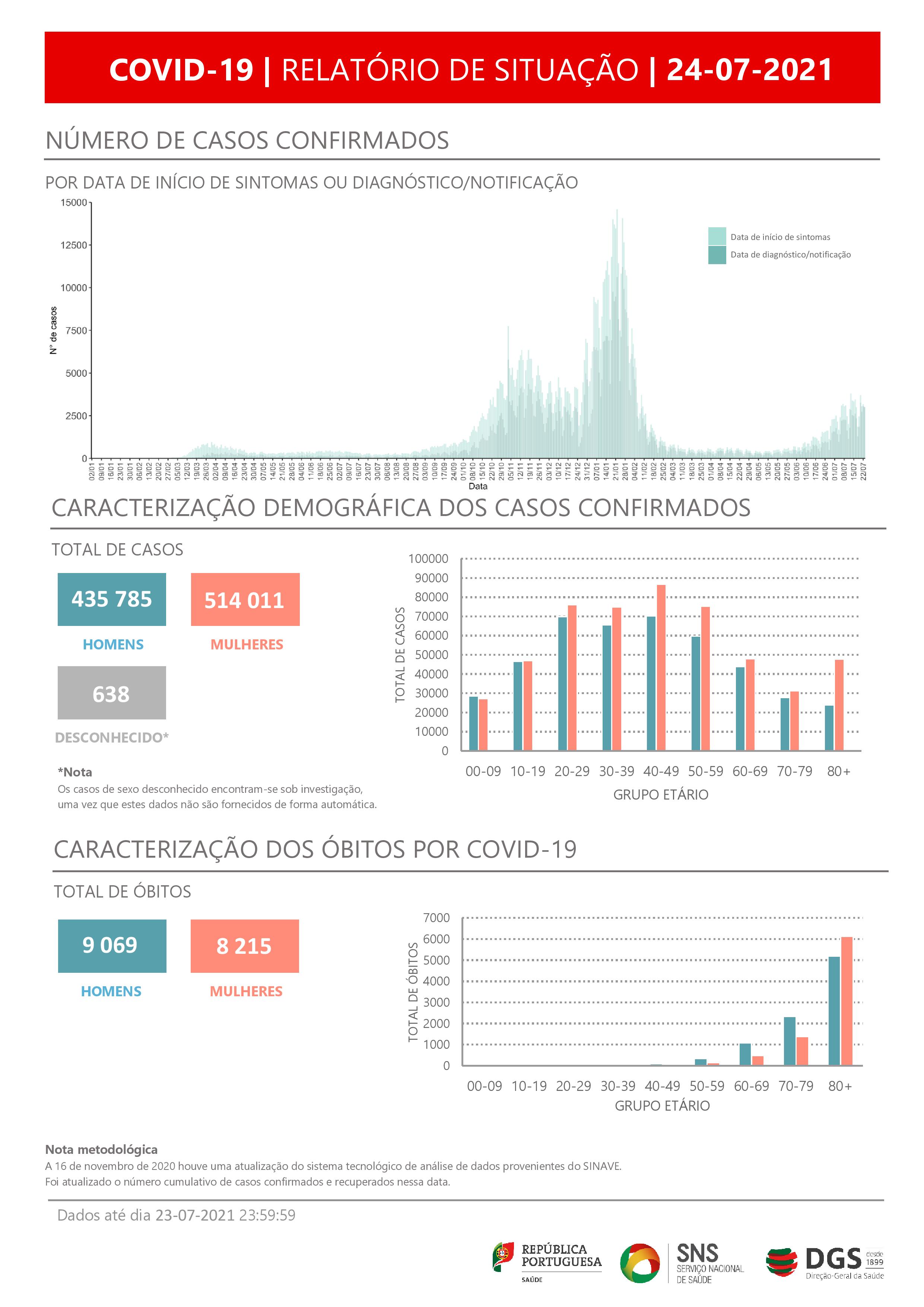 Os casos de covid-19 nas últimas 24 horas são, sobretudo, entre as faixas etárias dos 0 aos 59, totalizando 70% das novas infeções, sendo em maior número entre os 10 e os 49 anos.