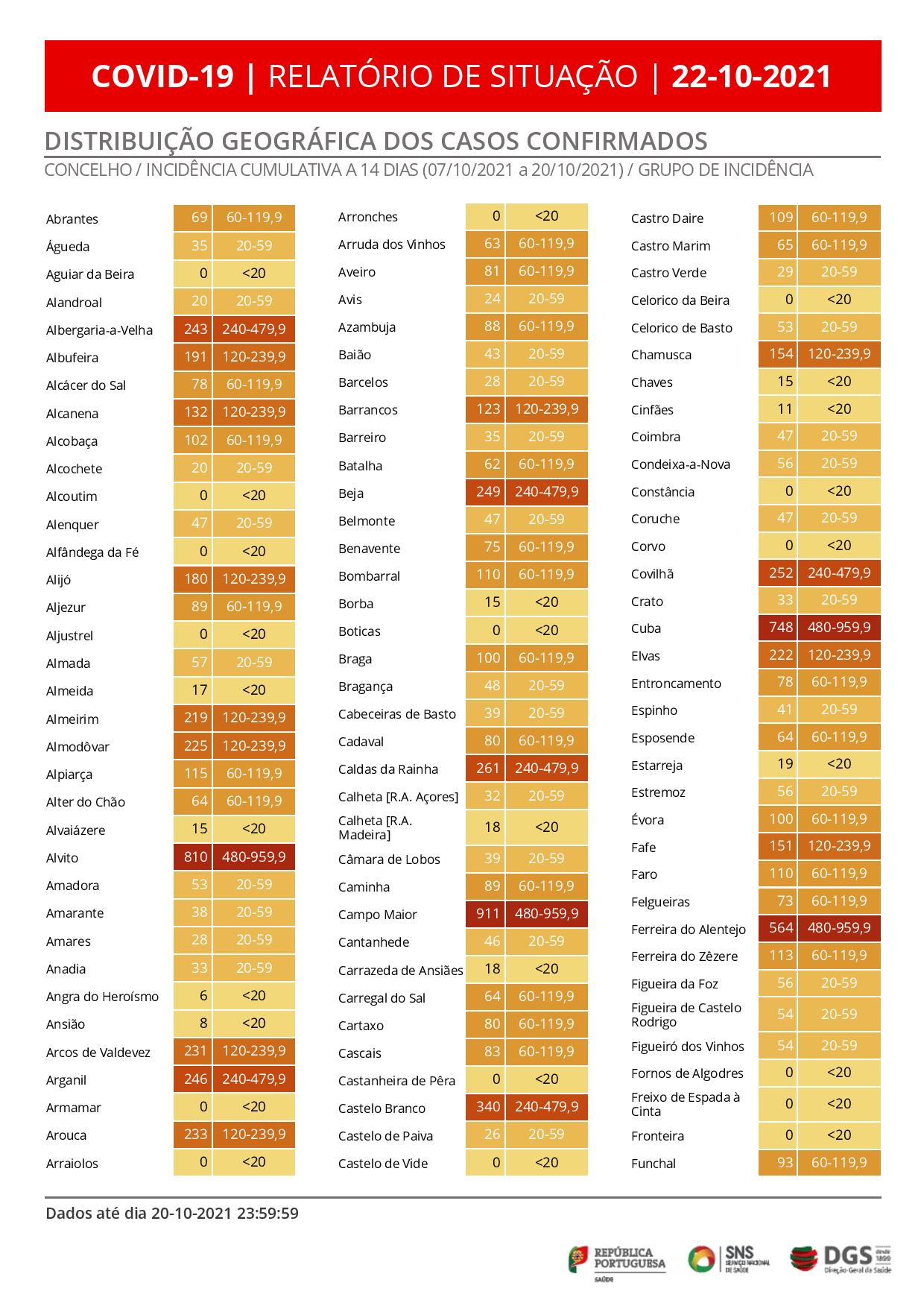 Os oito óbitos foram registados nas regiões de Lisboa (1), Norte (2), Centro (2), Alentejo (2) e Algarve (1).