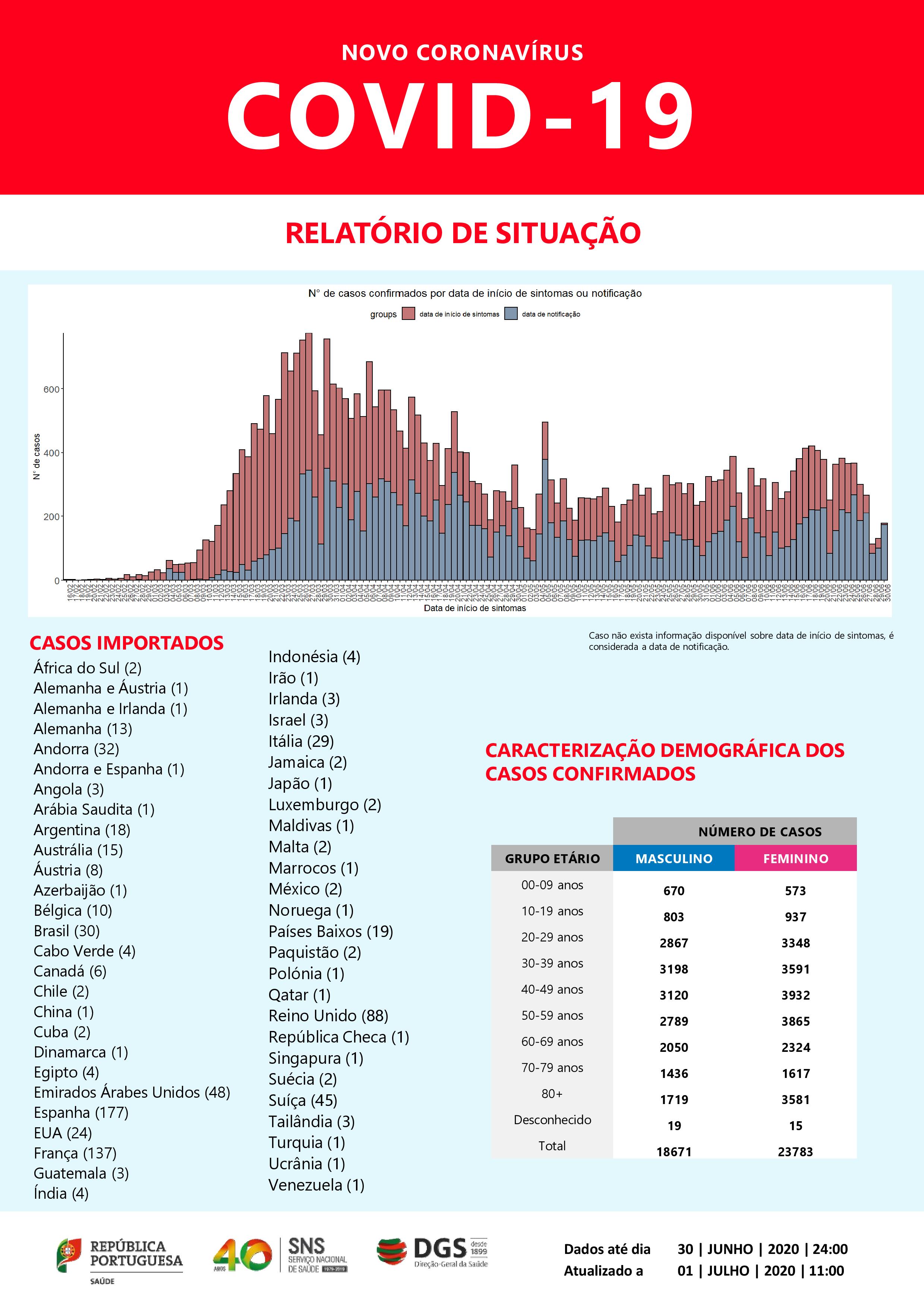 De acordo com o boletim epidemiológico da DGS, o número de mortos relacionadas com a covid-19 ascende hoje a 1.579 pessoas enquanto os casos confirmados desde o início da pandemia totalizam 42.454 infetados.