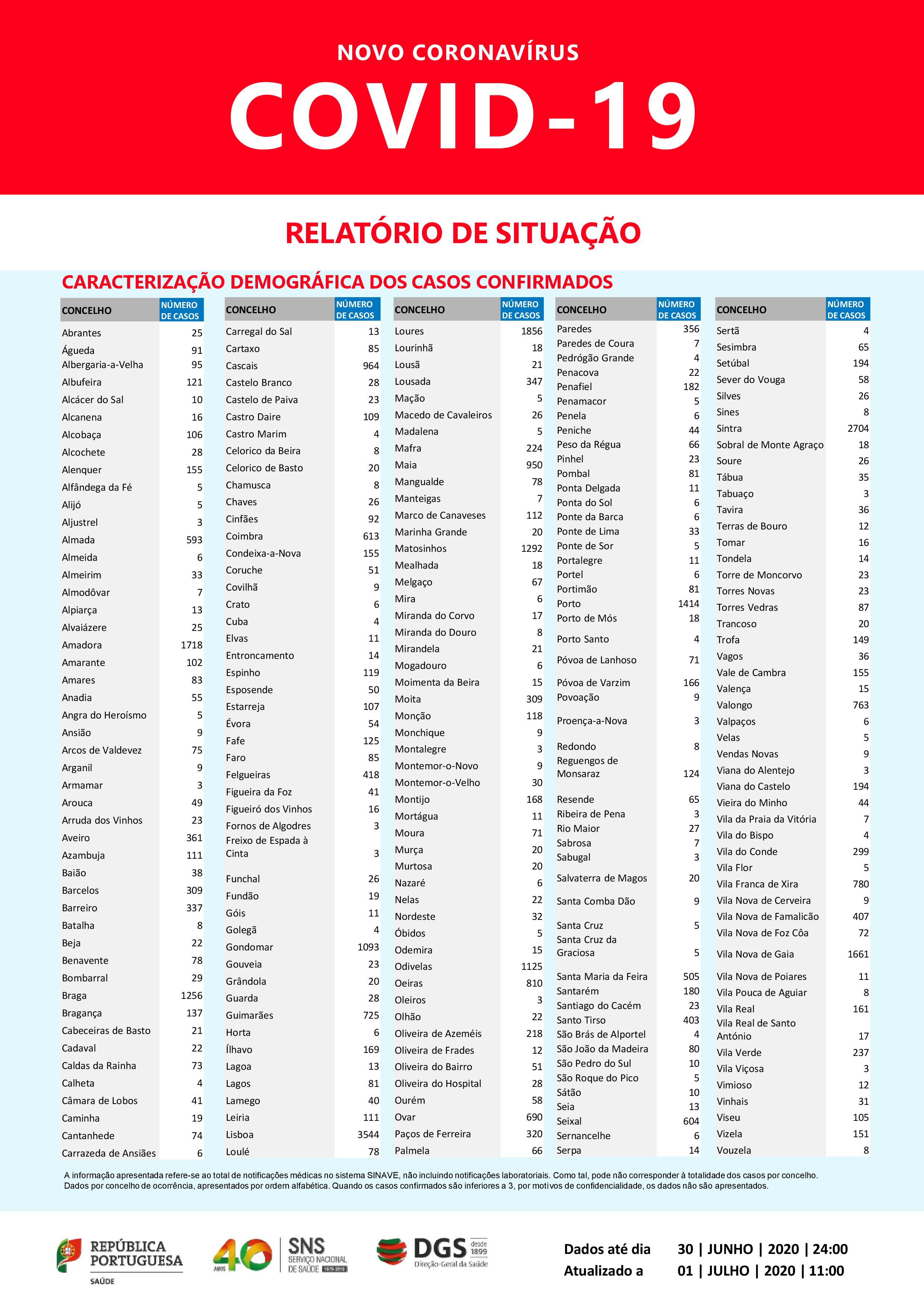 Na distribuição dos casos infetados por concelhos, Lisboa é o que regista o maior número de casos, com 3.544 (mais 42 do que na terça-feira), seguido por Sintra, com 2.704 (mais 36).