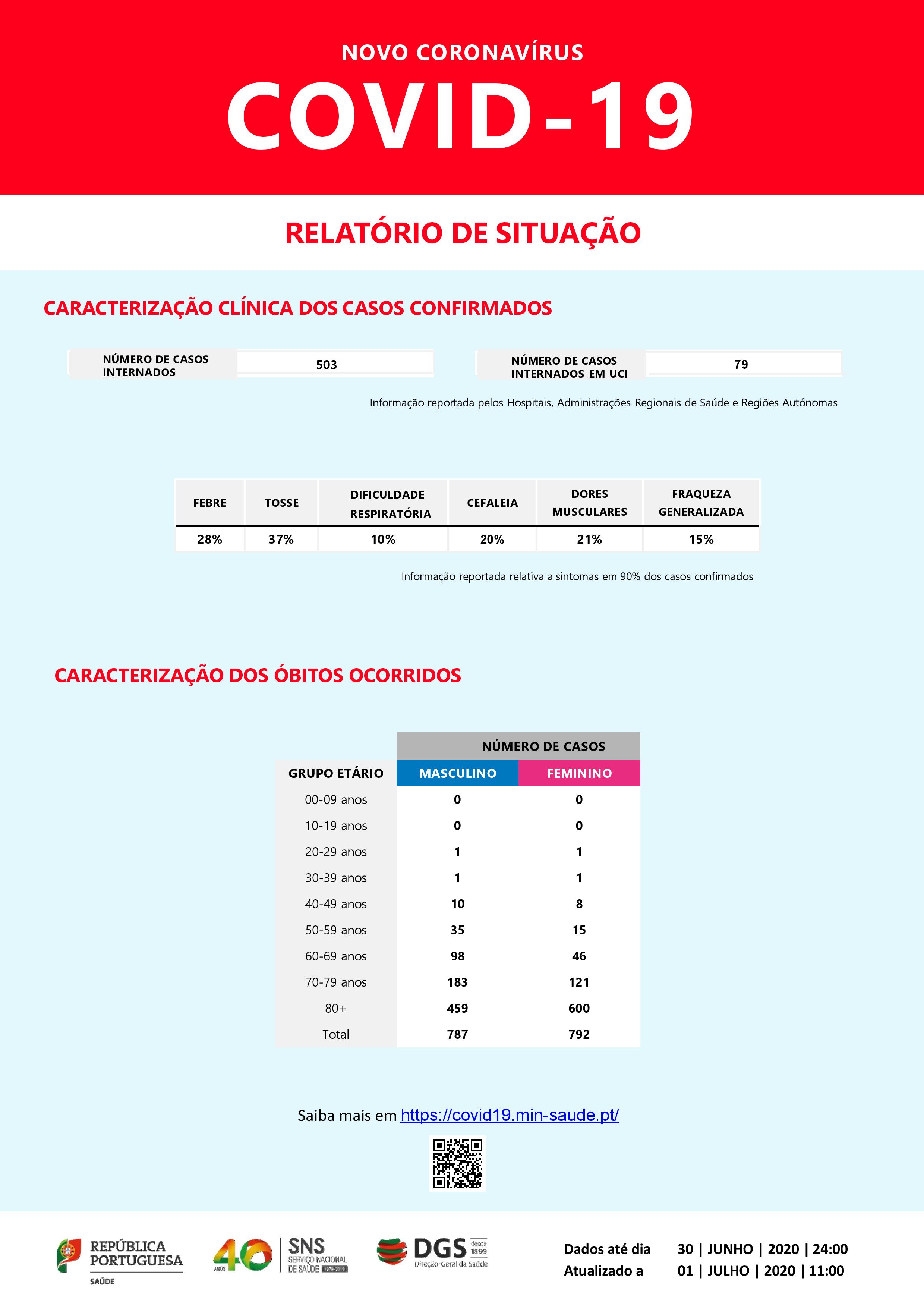 Os dados do relatório da DGS indicam que, do total de mortes registadas até hoje, 787 são homens e 792 são mulheres. O que significa que de terça para quarta-feira faleceram um homem e duas mulheres, e todos com 80 ou mais anos.