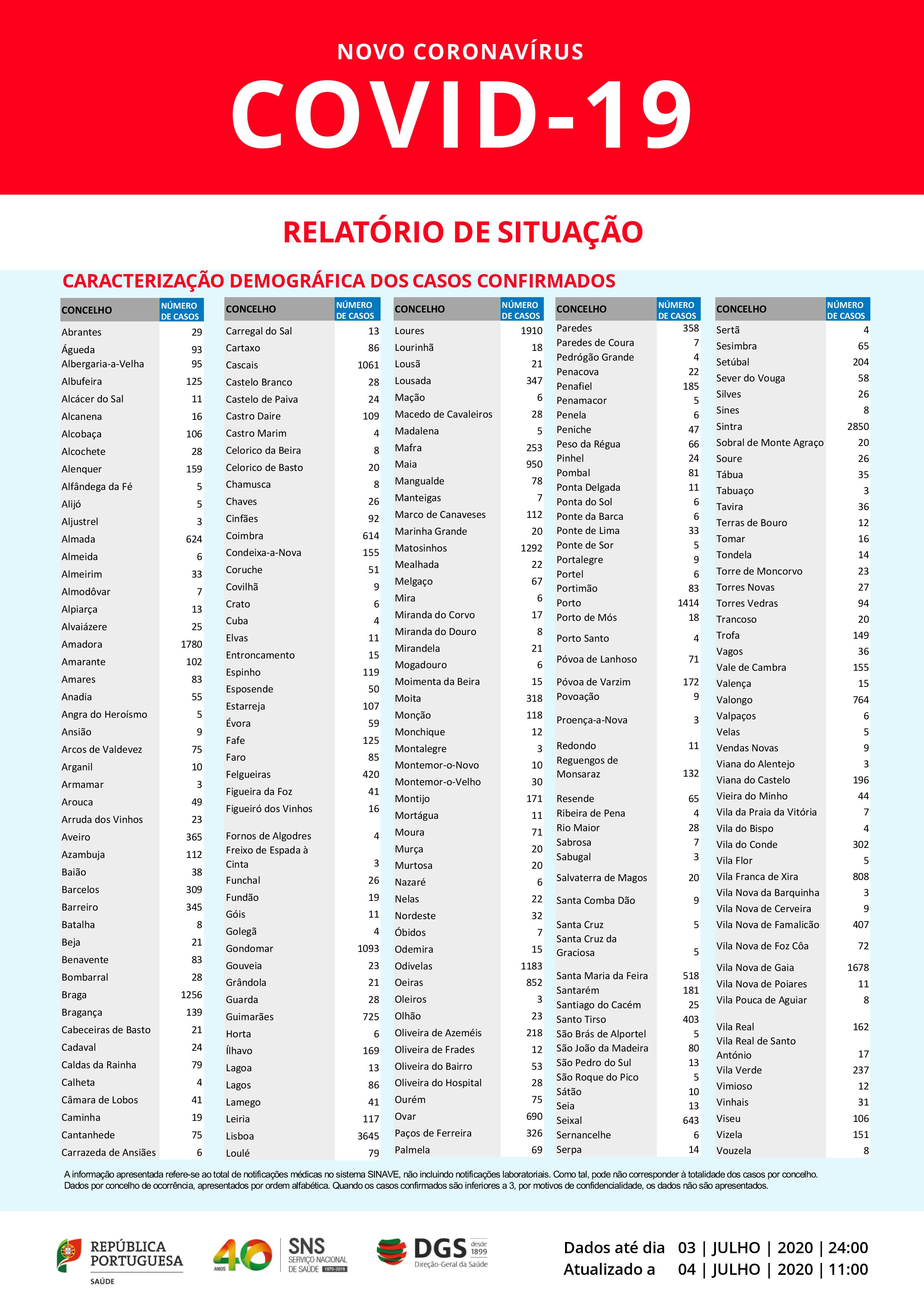 Segundo o boletim epidemiológico diário da DGS, o total de mortos por covid-19 desde o início da pandemia é de 1.605 e o total de casos confirmados é de 43.569 infetados.