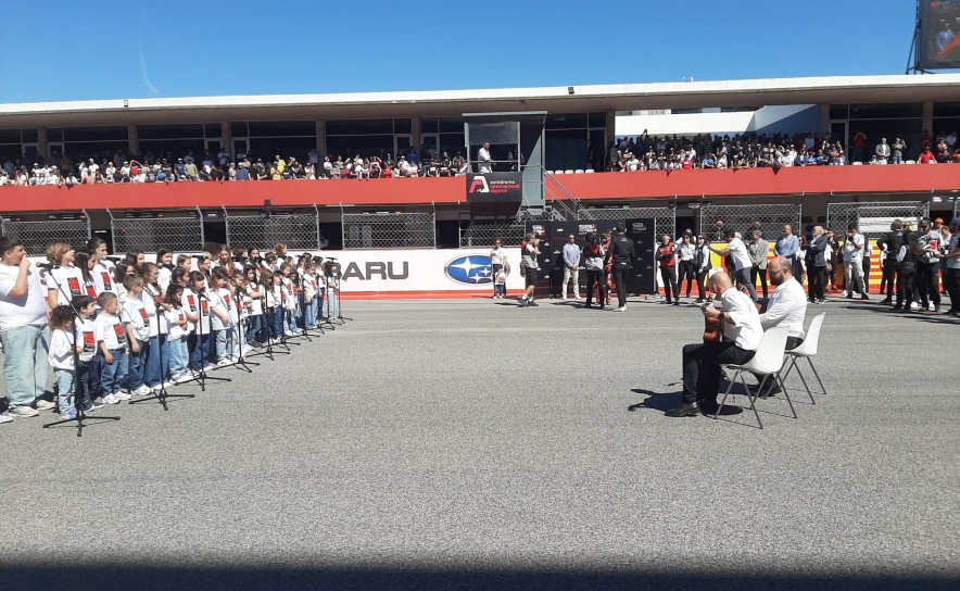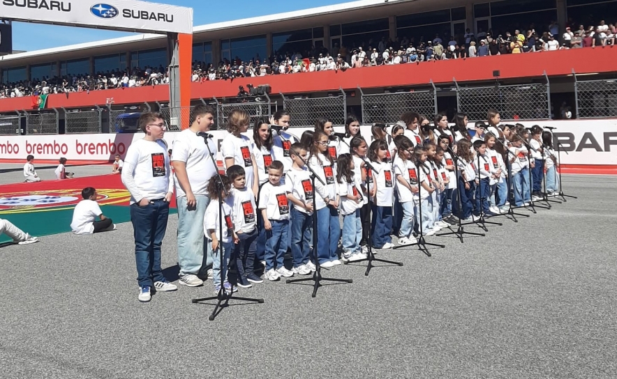 Acompanhadas à viola por Ricardo Silva e à guitarra portuguesa por Ricardo Martins, 44 crianças entoaram o Hino Nacional “A Portuguesa” perante milhares de pessoas que vieram assistir à prova.