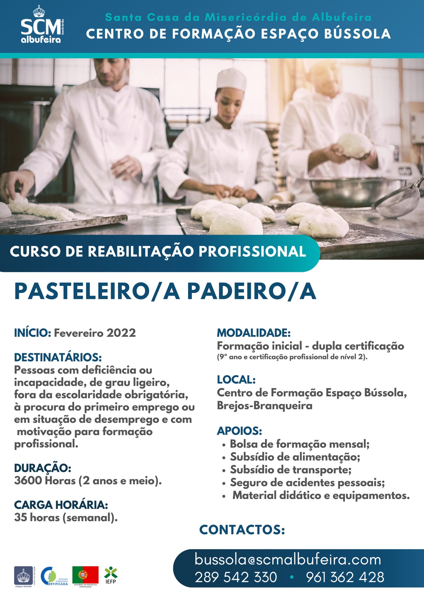 Para mais informações consulte o cartaz em anexo, ou contacte-nos via: bussola@scmalbufeira.com | 289 542 330 | 961 362 428