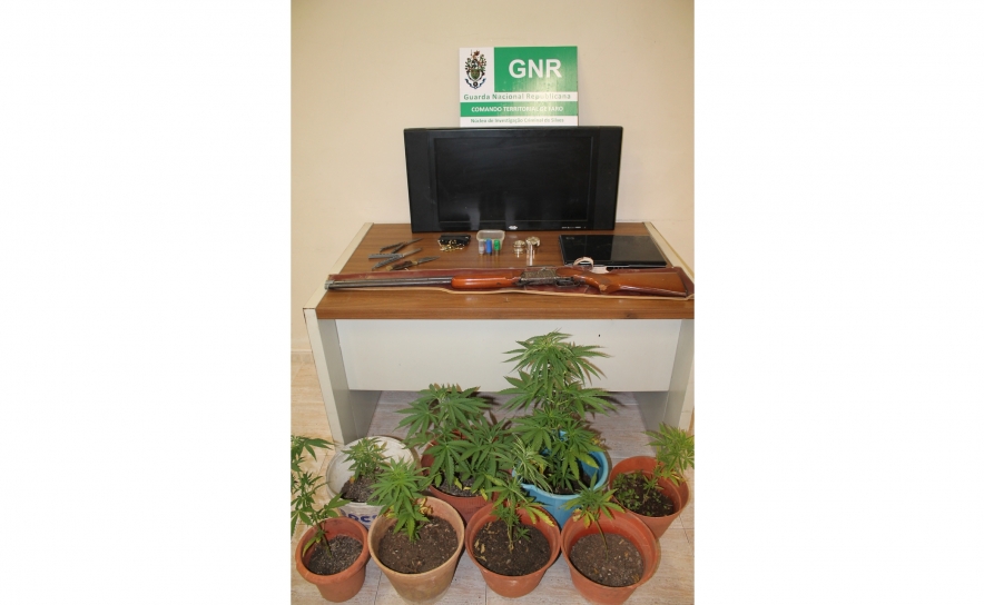 Foi ainda apreendida uma espingarda caçadeira e três armas brancas (duas facas borboleta e uma navalha), para além de diversas munições calibre 12 e .22, 1 televisor LCD e 1 computador portátil.