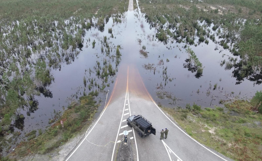 Estão empenhados cerca de 525 militares, militarizados e elementos da Polícia Marítima, 70 viaturas, 56 embarcações, quatro geradores e 17 drones, a que acresce um helicóptero em prontidão, estando a Marinha e a AMN, de acordo com a avaliação efetuada junto das autarquias, a aumentar, de forma gradual, o pessoal e meios no local.