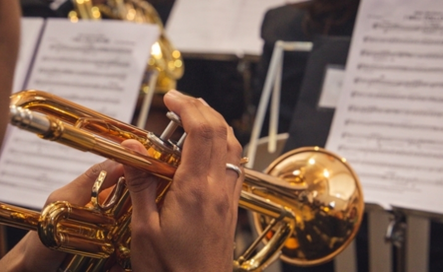 Performance musical, com grupo representativo da banda filarmónica, com instrumentos de sopro e percussão de origem muito diversa.