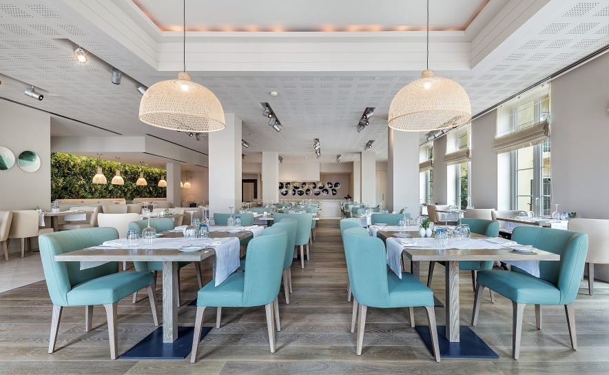 Este icónico hotel de luxo com 192 quartos e suítes, que faz agora parte do portefólio de hotéis de luxo do grupo grego Domes Resort, apresenta-se com uma inspiração marcadamente mediterrânica, com interiores alusivos à paisagem eco-protegida envolvente, cujas cores frescas refletem os jardins, as piscinas e o lago da propriedade. O hotel reabre à imagem do conceito de alta qualidade de vida dos Domes Resort, nas ilhas gregas, proporcionando uma experiência "hotel-within-a-hotel" para os viajantes mais exigentes que procuram espaço, privacidade, e uma ligação mais profunda à natureza, com tranquilidade e uma experiência ativa local.
