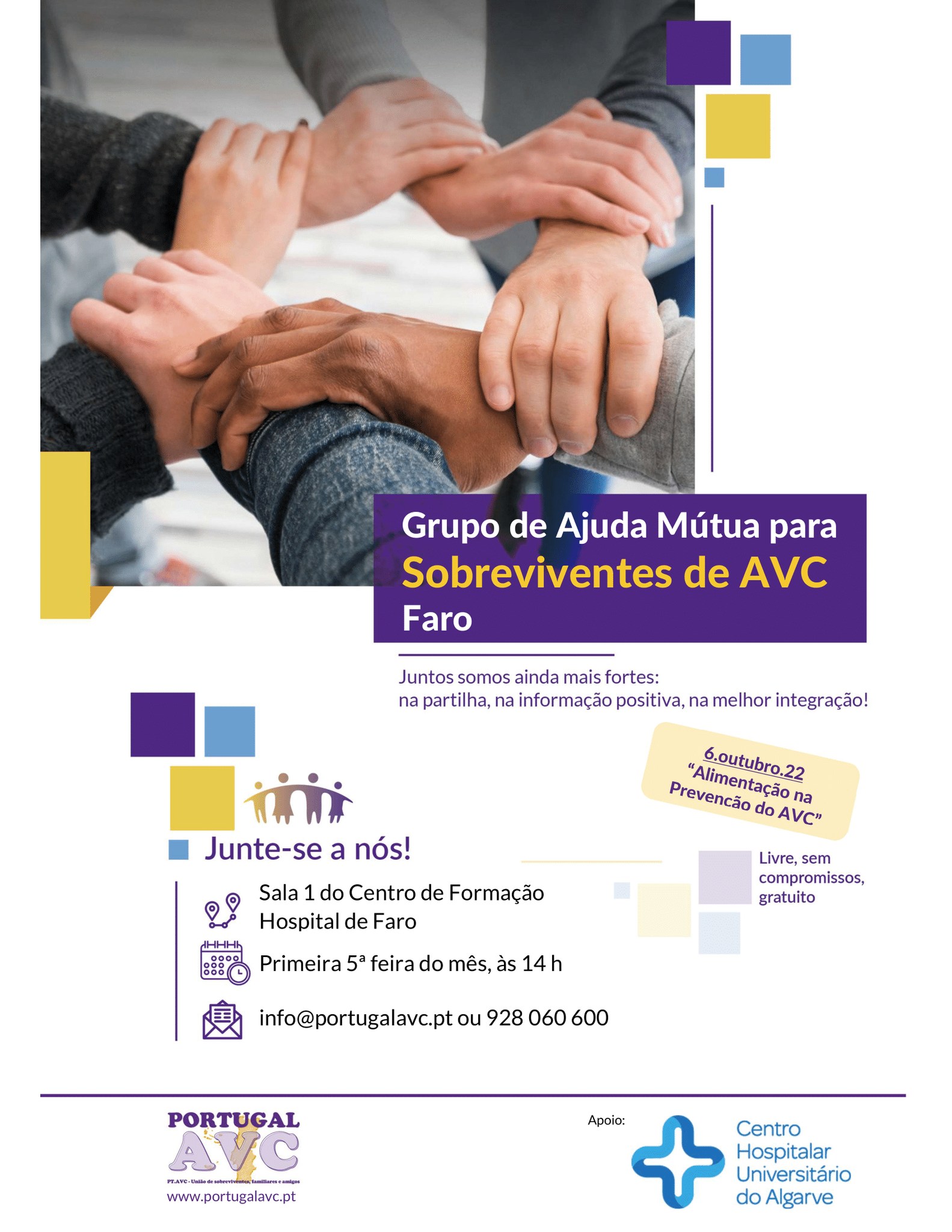 Em Faro, com o apoio do Centro Hospitalar e Universitário do Algarve, a associação Portugal AVC promove encontros abertos a todos, que são sempre livres, gratuitos e sem qualquer compromisso. Se é sobrevivente de AVC e está interessado, basta aparecer não necessitando