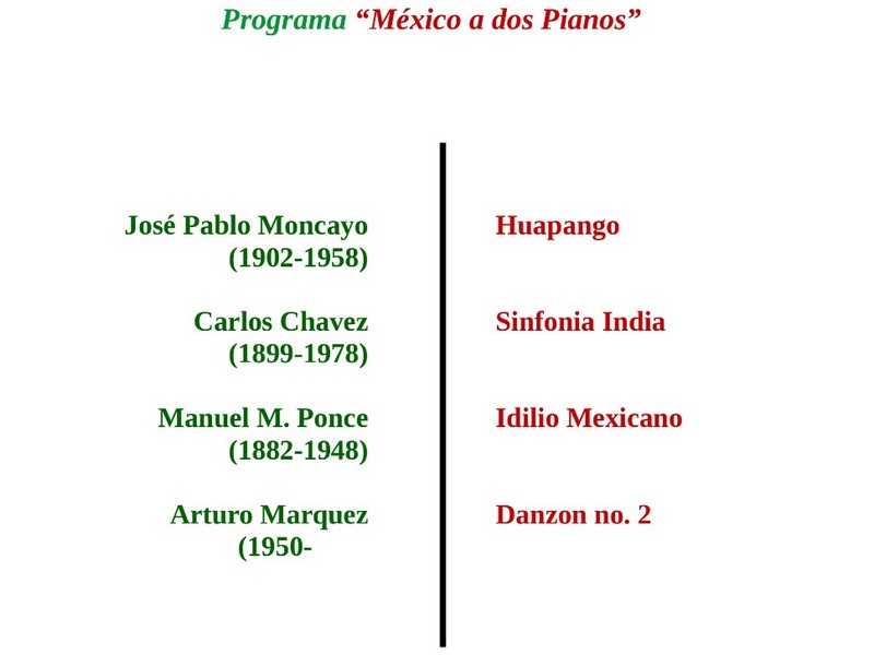 O “Dúo Meksyk” composto por Daniel Torres e Luís Herman, dois jovens talentos mexicanos criadores do projeto “México a dois Pianos” que promovem nos principais foros de música europeus como é o caso de Albufeira, Algarve; com o apoio da Embaixada do México em Portugal.
