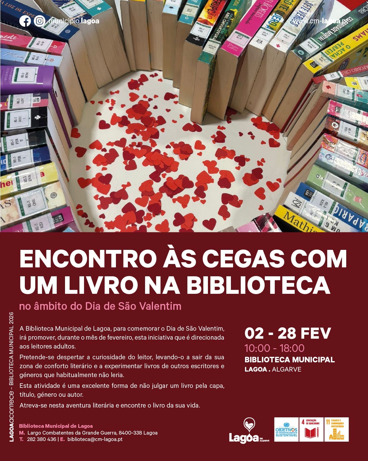 No âmbito das celebrações do Dia de São Valentim, a Biblioteca Municipal de Lagoa promove durante o mês de fevereiro, a iniciativa: Encontro às Cegas com um Livro na Biblioteca dirigida a leitores adultos e orientada para a valorização da leitura enquanto experiência pessoal e reflexiva.