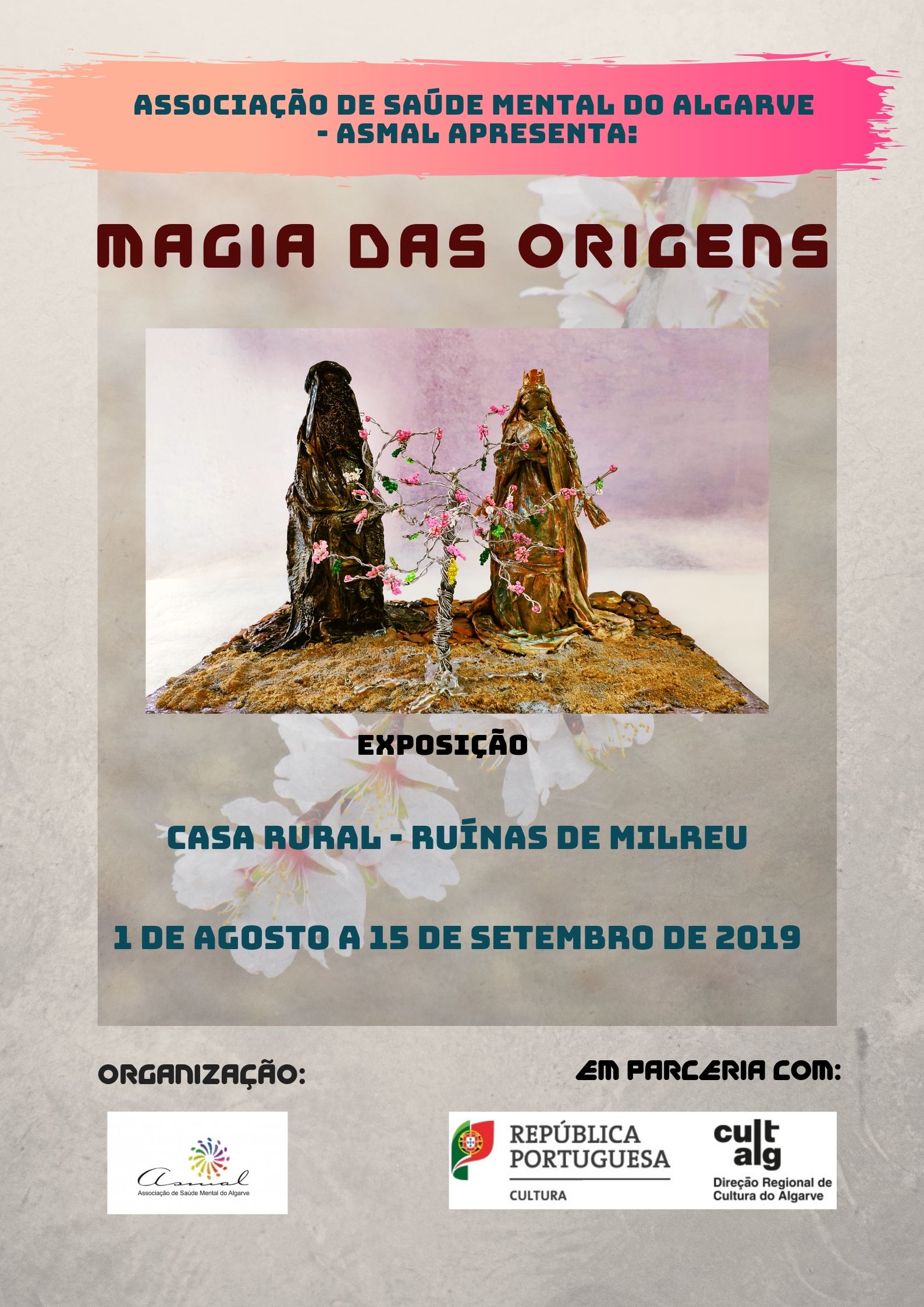 A exposição “Magia das Origens” é composta por 5 esculturas alusivas às lendas deCacela a Velha (Vila Real de Sto António), Carvoeiro (Lagoa), Moura de Floripes(Olhão), Senhora dos Mártires (Castro Marim) e a Lenda das Amendoeiras.