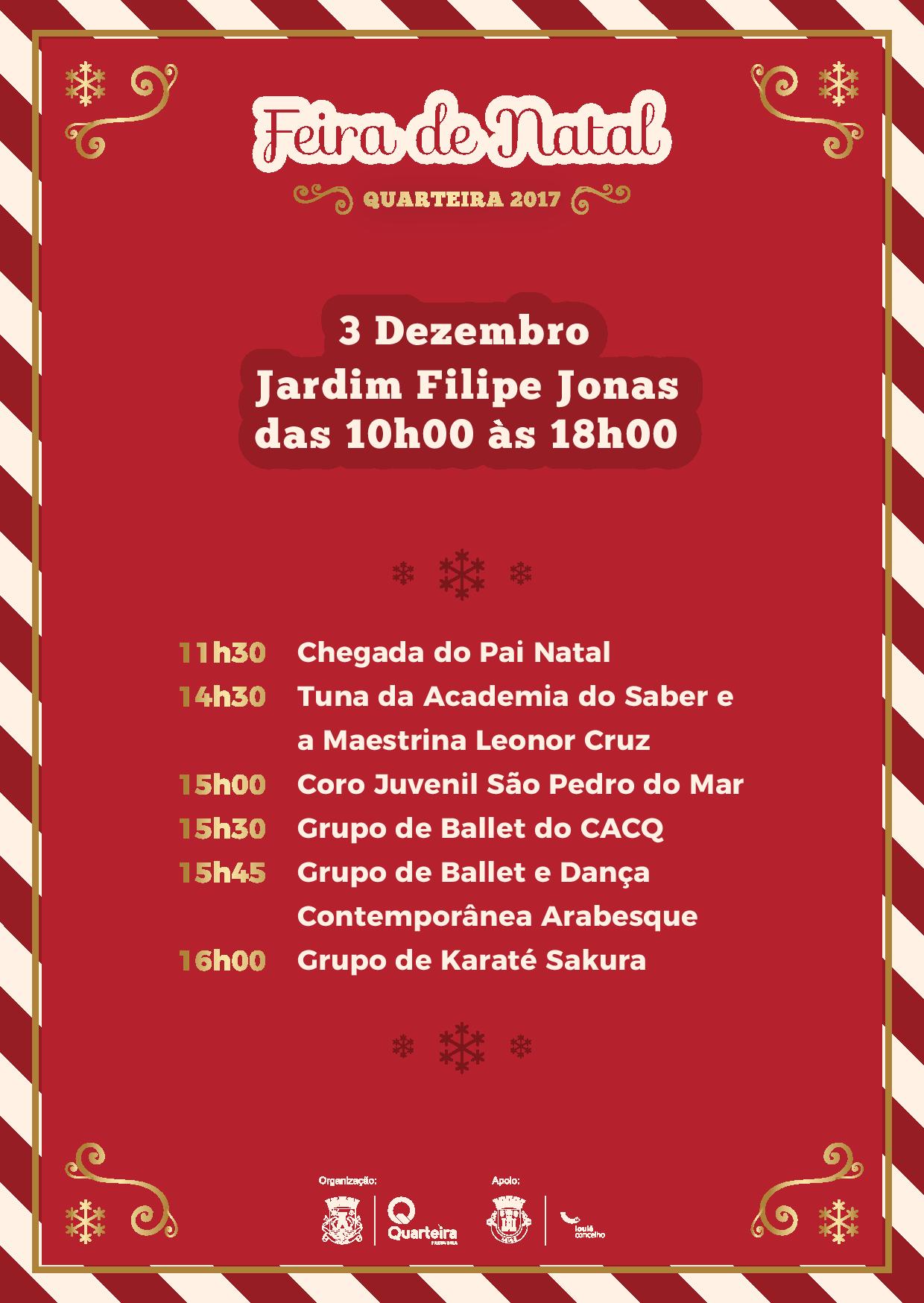 No domingo, dia 3 de dezembro, a abertura está agendada para as 10h00 e prolongar-se-á até às 18h00, no Jardim Joaquim Filipe Jonas, em Quarteira.