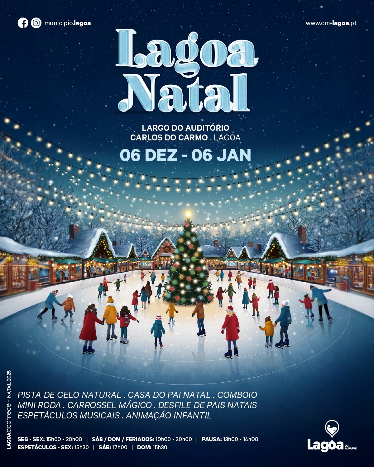 A Lagoa Natal 2025 promete diversão para miúdos e graúdos, com a Casa do Pai Natal como ponto alto, mas também com comboio temático, carrossel, mini roda, pista de gelo, animação itinerante (pinturas faciais e espetáculos diversos), mercadinhos e muitas atividades pensadas para criar momentos inesquecíveis nesta quadra festiva.