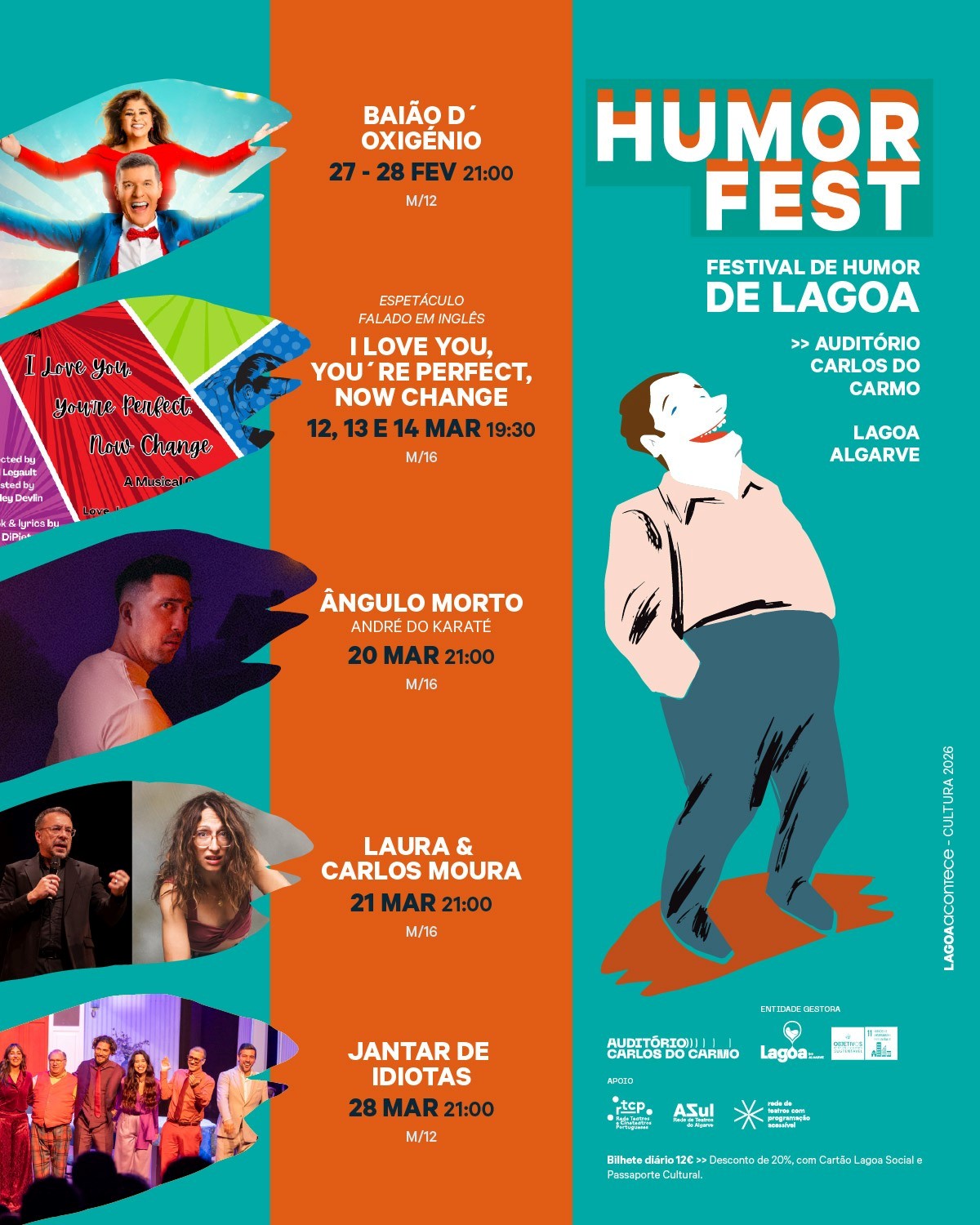 Desde o stand up, ao teatro de revista ou às peças de humor clássicas, são várias e diferentes as propostas apresentadas, bem como, os motivos para que venha descontrair e passar bons momentos em Lagoa e no Auditório Carlos do Carmo com o HUMORFEST.