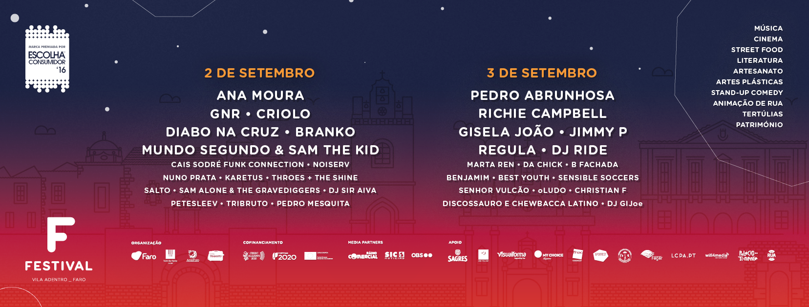 O cartaz, que conta com os principais nomes da música lusófona, como Ana Moura, Pedro Abrunhosa, GNR, Richie Campbell, Criolo, Gisela João, Jimmy P, Mundo Segundo & Sam the Kid, e a estreita ligação com a Vila Adentro, zona histórica de Faro, têm determinado a forte procura de bilhetes.