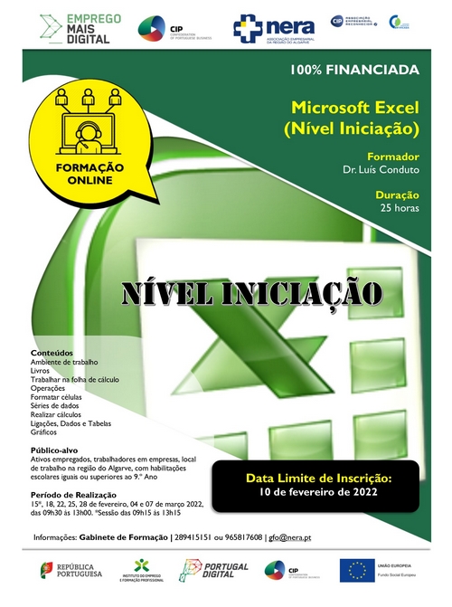 No âmbito do Projeto EMPREGO + DIGITAL, o NERA realizará em formato online a seguinte Ação de Formação Modular Certificada: