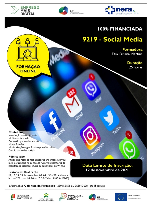 No âmbito do Projeto EMPREGO + DIGITAL, o NERA realizará em formato online a seguinte Ação de Formação Modular Certificada: