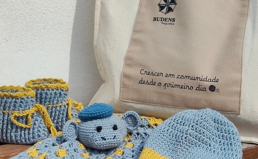 Os kits resultam do trabalho e dedicação do Clube de Crochet de Budens, cujas participantes confeccionam à mão várias peças para oferecer às novas famílias. Cada conjunto inclui peças de crochet preparadas com tempo e cuidado, um saco para a mãe com a frase do projeto — “Crescer em comunidade desde o primeiro dia” — e ainda um creme muda fraldas e um sabonete de cosmética natural, gentilmente oferecidos pela artesã local Marta Dinis, da marca O’de Oliva.