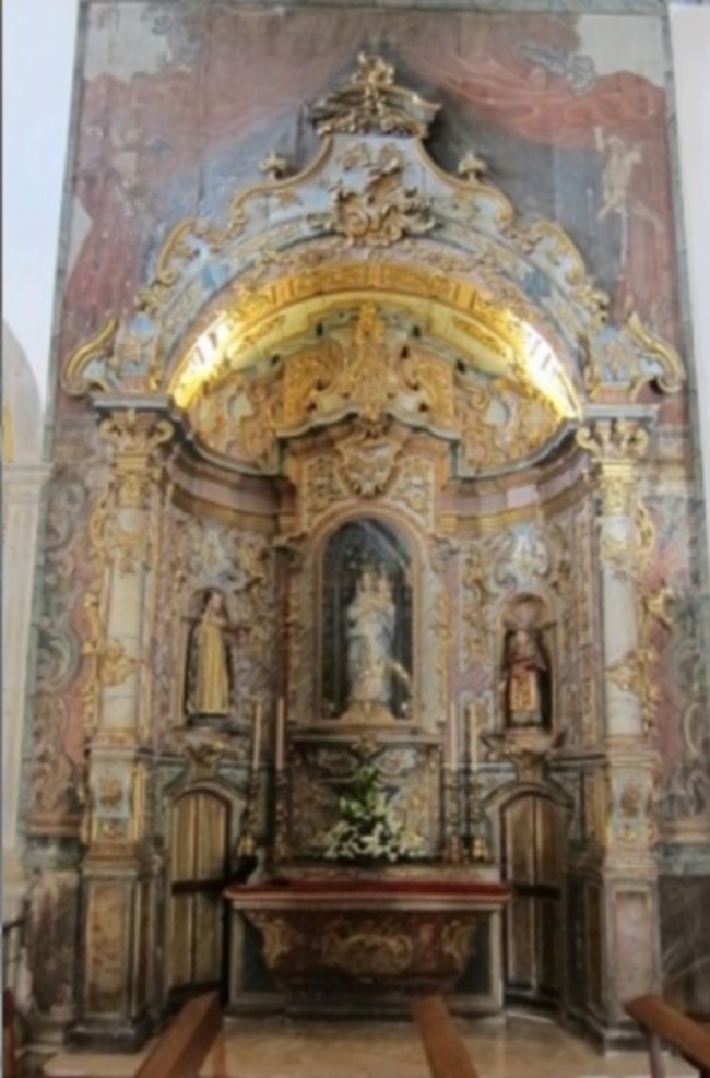 Esta tela pintada denominada “Boca de Cena” e que emoldura o Altar é considerada Património Integrado do Monumento de Interesse Público, Igreja Matriz de São Pedro de Faro.