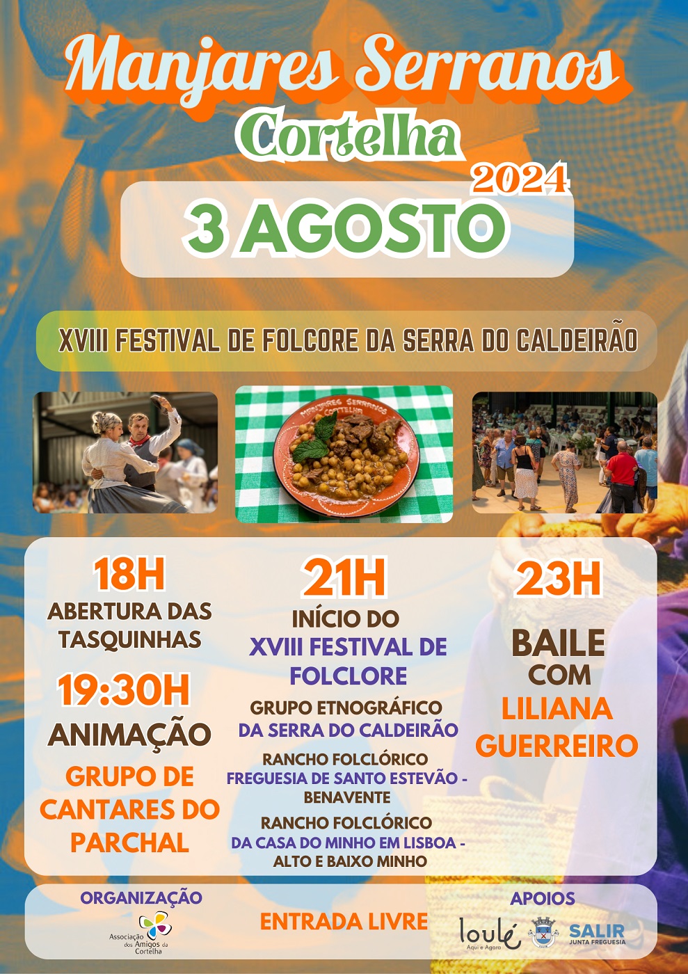 Assim no dia 3 de Agosto, o Pavilhão da Cortelha irá acolher mais uma edição dos Manjares Serranos, com entrada livre e muita gastronomia, animação e artesanato, em mais uma organização da Associação dos Amigos da Cortelha, com o apoio da Câmara Municipal de Loulé, Junta de Freguesia de Salir e do Agrupamento de Escolas Padre João Coelha Cabanita.