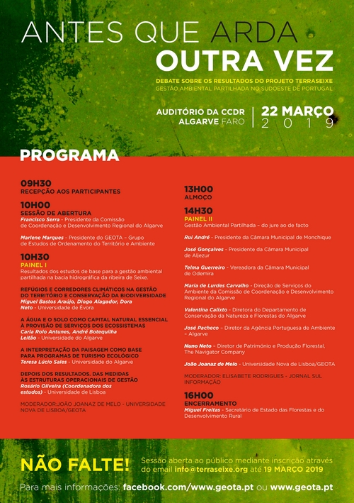 Marlene Marques, Presidente do GEOTA, reiterou hoje que “este projeto pretende introduzir em Portugal uma metodologia colaborativa e participativa para a gestão do território”. E alertou também que “face aos recentes incêndios e aos seus impactos catastróficos reiterados é preciso repensar o modelo de desenvolvimento que queremos antes que arda outra vez”.