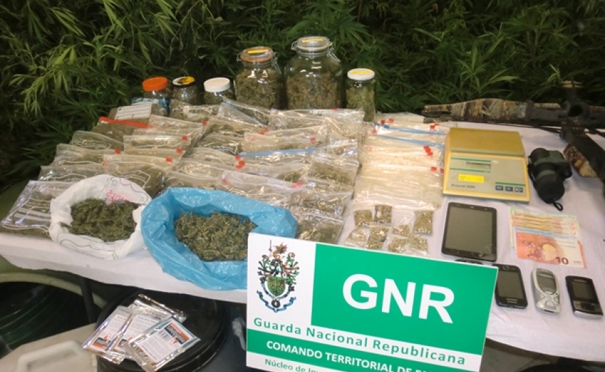 Para além do armamento apreendido, parte dele calibre de guerra, destacam-se as plantas de canábis, cultivadas no terreno envolvente à habitação, bem como os diversos produtos associados ao seu cultivo e acondicionamento, onde se incluem inúmeras embalagens de produto fertilizante.