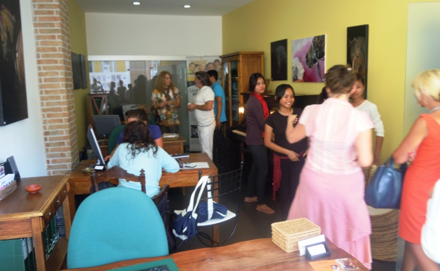 Ensinamos a nossa língua: Aos sábados à tarde, a nossa professora dá o curso de português para franceses nossos clientes, começámos no nível 0 na semana passada e o número de inscrições tende a aumentar todas as semanas! São clientes que vivem cá há pouco tempo e precisam de aprender rápido o essencial para uma conversação.