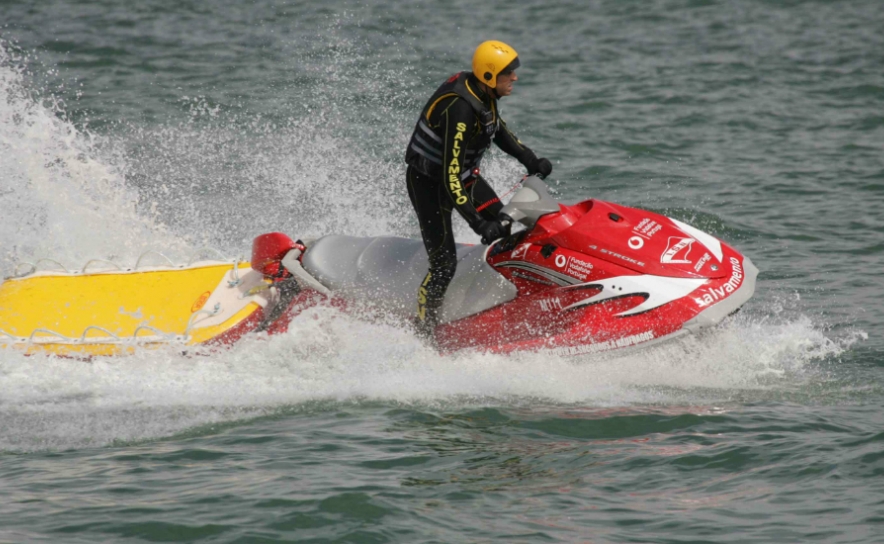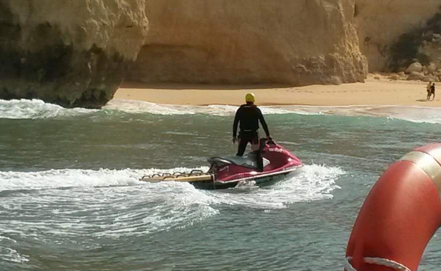 No local, pelas 09h25, concluiu-se que a vítima teria que ser retirada por mar, por se tratar de uma praia sem acesso por terra. Considerando que o mar estava com uma ondulação de cerca de 2,5m, foi enviada para o local uma moto de salvamento marítimo com uma maca flutuante.