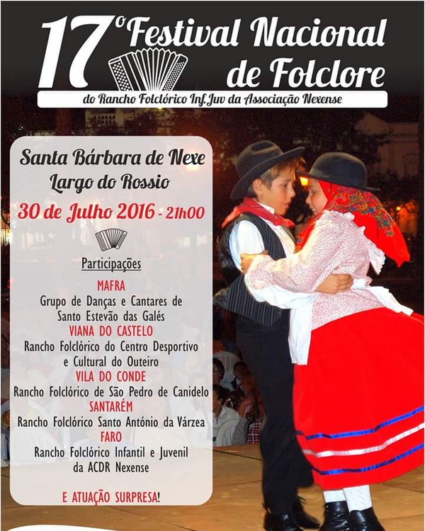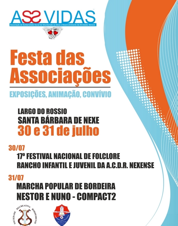 O certame abrirá no sábado dia 30, por volta das 21:00 horas com a realização do 17º Festival do Rancho da Associação Nexense que este ano trás ao Algarve, grupos vindos do extremo Norte de Viana do Castelo-Outeiro, de Vila do Conde, o rancho de S. Pedro do Canidelo, da estremadura e da região saloia, o Rancho de Sto. Estevão de Galés, e do Ribatejo, o rancho de Sto. António da Várzea. No domingo, é a vez da atuação da Marcha da Sociedade Bordeirense por volta das 22:00 horas, e até lá animação musical a cargo de Nestor e Nuno, bem como as tasquinhas de comes e bebes.