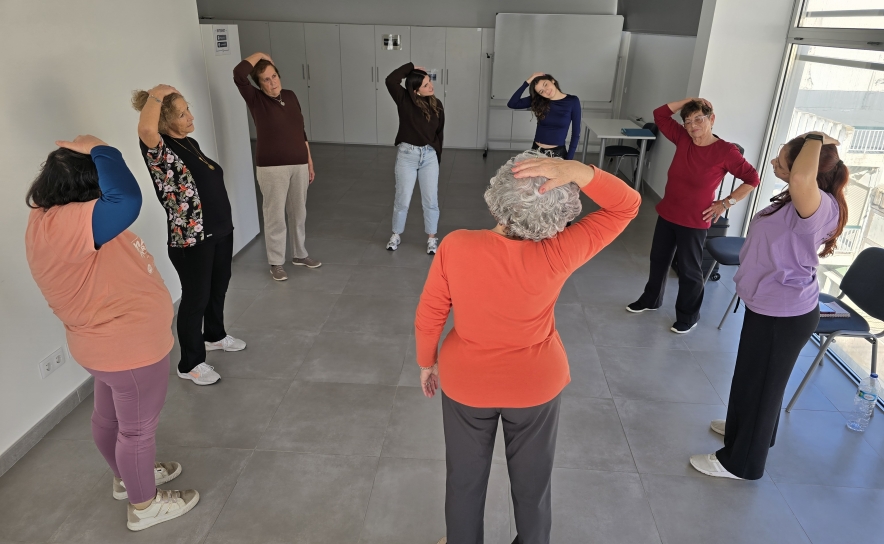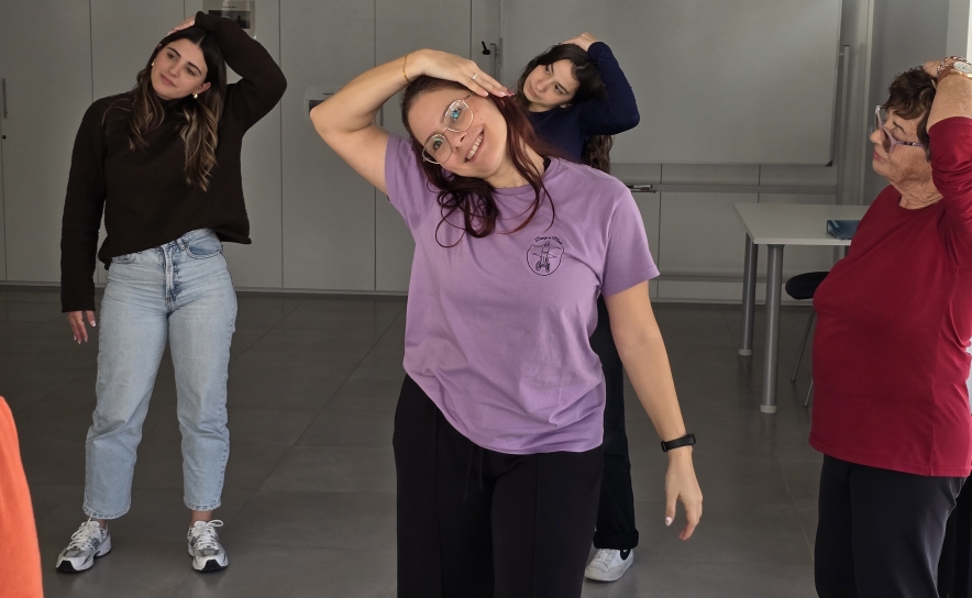 Na tarde de ontem, 19 de fevereiro, o Edifício Sociocultural de Quarteira foi palco de uma sessão especial de dança inserida no projeto "Mãos que Cuidam. Corações que Crescem" , da responsabilidade das estagiárias da Universidade do Algarve, no âmbito do programa Quarteira Longevidade com Qualidade da Junta de Freguesia de Quarteira. A atividade "Corpos em Movimento. Almas Felizes" foi dinamizada por Iara Lourenço, professora de Dança Contemporânea com um percurso marcado pela sensibilidade, competência técnica e uma alegria contagiante que rapidamente conquistou todas as participantes. Iara Lourenço não é apenas uma professora de Dança. É alguém que entende o movimento como expressão de vida, de emoção e de bem-estar. Com uma abordagem que alia o rigor técnico à suavidade, Iara conduziu a sessão com uma tranquilidade que colocou todas as participantes à vontade, independentemente das suas capacidades ou experiência prévia.