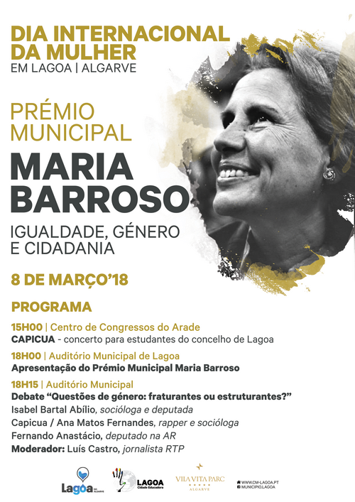 O Programa inclui propostas diversificadas para todos os públicos. O espetáculo durante a tarde do dia 8, com a Capicua no CCA, é uma oferta especial às/aos estudantes do Concelho de Lagoa. Já o debate “Questões de género: fraturantes ou estruturantes?” é para todos no Auditório Municipal entre as 18 e as 20h do mesmo dia 8. Conta com participações de duas mulheres e dois homens mulheres: Isabel Bartal Abílio é socióloga e deputada no cantão de Zurique mas viveu a sua infância e juventude em Lagoa. Capicua, que fora do palco se chama Ana Matos Fernandes, é rapper, socióloga e feminista. Fernando Anastácio é deputado pelo circulo do Algarve à Assembleia da República Portuguesa. A moderação está a cargo de Luís Castro, jornalista da RTP e apresentador do programa “sociedade Civil”.