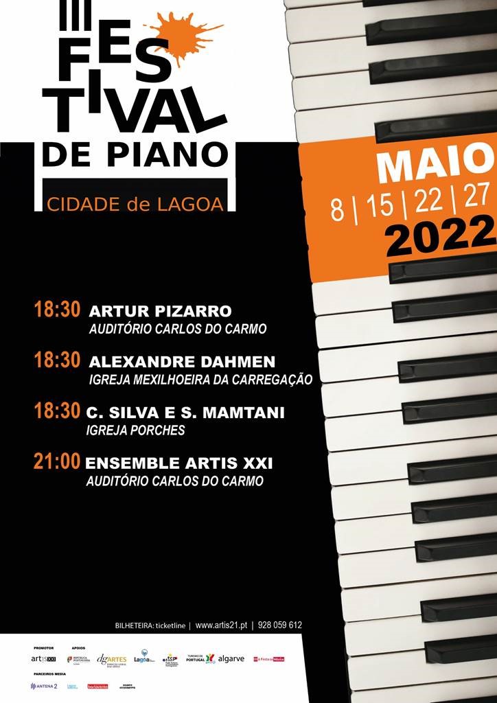 O «III Festival de Piano Cidade de Lagoa», com 4 concertos durante o mês de Maio, assume-se como um evento de referência no panorama nacional. É promovido pela Artis XXI [ Dir. Artística Elsa Mathei e Rute Gomes ]. A Dir. Artística do III Festival de Piano Cidade de Lagoa está a cargo do pianista Jeferson Mello. O programa do Festival de Piano Cidade de Lagoa propõe diversos formatos e linguagens musicais assegurados por pianistas com percursos relevantes no panorama nacional e internacional, ao mesmo tempo que cria um espaço de diálogo para músicos residentes no território de Lagoa, tendo sempre o piano como o grande protagonista. De âmbito pedagógico, teremos um concerto assegurado por jovens músicos de Lagoa, estudantes do Conservatório de Artes de Lagoa, de forma a valorizar o trabalho artístico desenvolvido pelas novas gerações. A ARTIS XXI, na sua premissa de permitir a fruição universal das artes, irá promover concertos de piano nos lares da 3ª idade no Município de Lagoa. Estes momentos estão a cargo da pianista Shaina Nazareth que irá partilhar obras dos grandes mestres do piano.