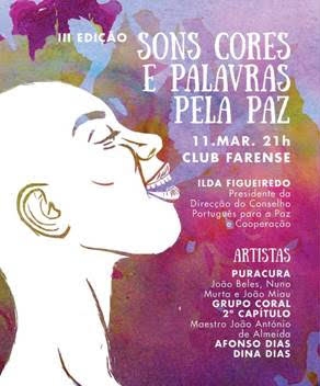 Destacamos a realização da III edição da Sessão "Sons, Cores e Palavras pela Paz", dia 11 de Março, às 21:00 horas no Club Farense. Esta sessão é realizada em parceria com o Club Farense e é de entrada livre.