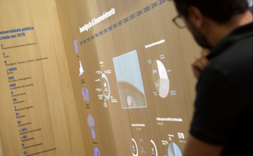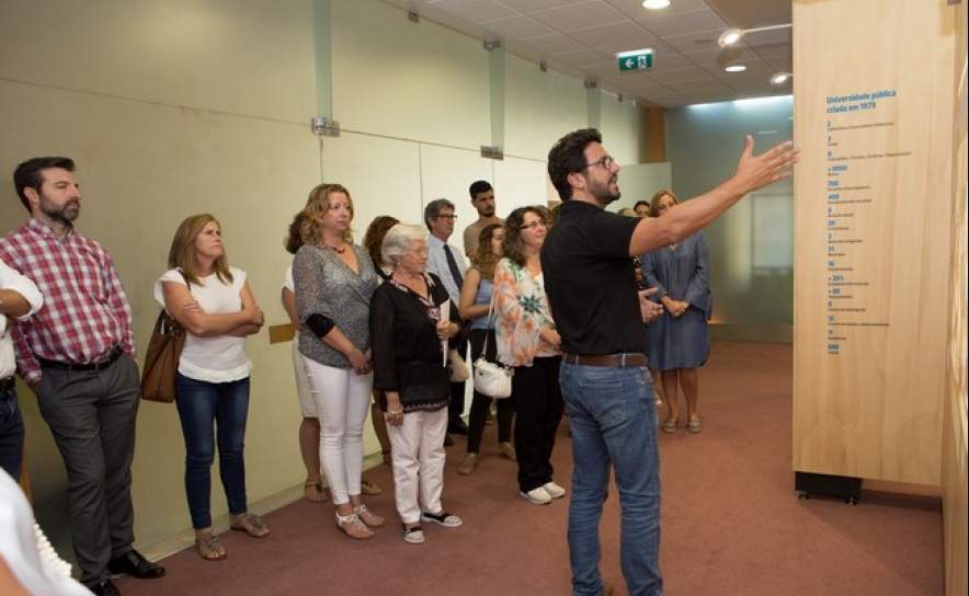 A exposição teve o seu início no dia 9 de maio, no Átrio Principal do Palácio de São Bento, em Lisboa, por ser a única universidade portuguesa criada por Lei da Assembleia da República.